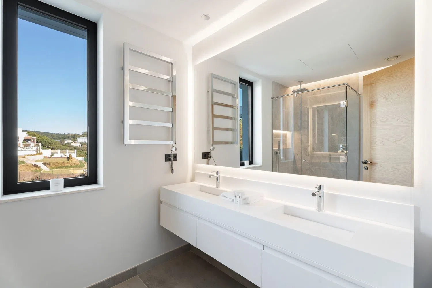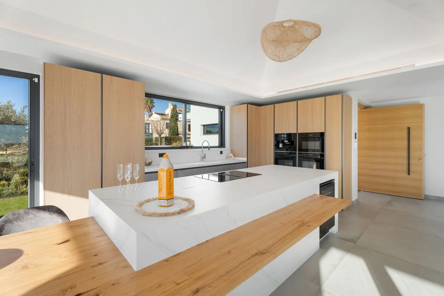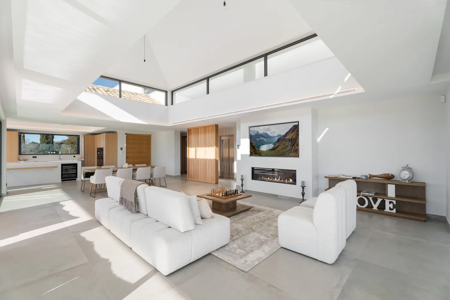 На верхнем уровне располагаются ещё три спальни с ванными комнатами, включая роскошный главный номер с гардеробной и приватными террасами. Огромный солярий на вершине виллы предоставляет неповторимое пространство для наслаждения погодой и захватывающими закатами летом.