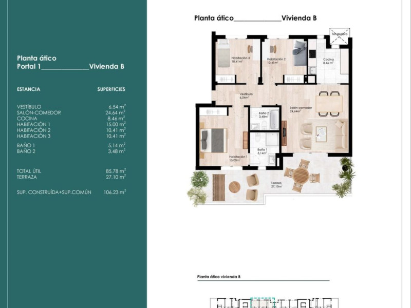 CONSTRUCCIÓN AVANZADA, ÚLTIMAS VIVIENDAS es una urbanización privada, con piscina, zonas verdes y ajardinadas, compuesta por 2 edificios de 16 viviendas de 3 y 4 dormitorios, con garaje y amplio trastero. Los bajos disponen de jardín, los pisos de terraza, y los áticos de una gran terraza. Todas las viviendas dispondrán de tendedero en cocina. La promoción se encuentra en una ubicación privilegiada en el suroeste de Santander, desde donde se puede llegar en 8 minutos al Sardinero o al centro de la ciudad. El emplazamiento cuenta con todos los servicios: restaurantes, colegio, farmacia… y está muy cerca de las playas de Liencres y la Virgen del Mar. La promoción está diseñado para una Certificación Energética A, y un bajo consumo energético. Todas sus viviendas se orientan al Sur, por lo que disfrutan de luz e iluminación natural y disponen de un sistema de ventilación mecánica con recuperación de calor, que renueva el aire sin perder temperatura.Características de las viviendas: Puerta blindada, amplio distribuidor, puertas interiores y rodapiés blancos, cocina amueblada con electrodomésticos, baños con sanitarios, espejo en pared, mueble con lavabo encastrado y ducha de gran formato, precalentamiento de agua caliente sanitaria por placas solares, calefacción por suelo radiante, fachada ventilada, doble acristalamiento….