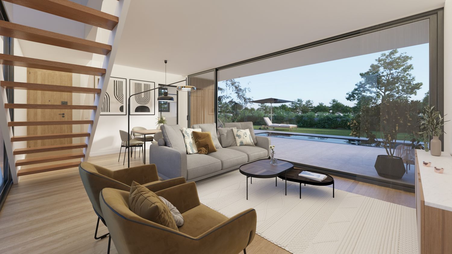 CHALET INDEPENDIENTE EN TANOS.La urbanización “Sorolla jardines” se localiza en una de las pocas parcelas urbanas disponibles en Tanos, con una situación privilegiada por su proximidad al centro de Torrelavega.Grupo Pinta presenta esta vivienda de 146 m2 organizada en 2 plantas en la cual se abre a un amplio porche potenciando la relación con el jardín y las vistas. El salón-comedor cuenta siempre con grandes ventanales, rompiéndose visualmente la barrera exterior interior y convirtiéndose el jardín en parte fundamental del interior de la casa.Todo lo anterior acompañado de las ultimas novedades en instalaciones como son la aerotermia y el suelo radiante, que contará con un sistema de regulación de independiente en cada una de las plantas.Distribución:Planta baja: Amplio salón-comedor que cuenta con grandes ventanales que conectan con el porche y el jardín, cocina abierta de gran tamaño, aseo y garaje de gran amplitud.Segunda planta: Tres espaciosas habitaciones y dos baños completos, uno de ellos perteneciente a una de las habitaciones.