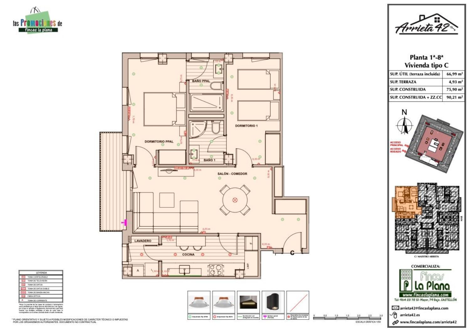 40 viviendas en construcción. Como siempre en las promociones comercializadas por Fincas La Plana, se utilizan los mejores materiales y acabados, y ademas, está todo incluido (excepto muebles, tv y decoración): Aire acondicionado frío / calor, por conductos.Todos los electrodomésticos, ¡TODOS¡ de la marca teka: frigorífico combi inox, lavavajillas integrado, lava-secadora, horno-microondas (todo en uno), campana extractora decorativa (marca pando).Baños con mueble de baño y espejo y mamparas en acabado cromo y cristal.Dormitorios con armarios empotrados completamente terminados y listos para su uso (cajoneras y perchas incluidas)Iluminación tipo led en toda la casa (empotrada o en superficie, excepto lámparas decorativas).¡GARAJE Y TRASTERO NO INCLUIDOS EN EL PRECIO!