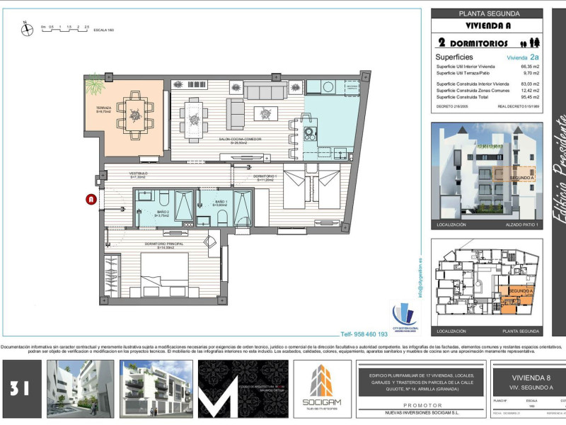 Nuevas Inversiones Socigam SL construye este edificio Idílico para los más exigentes en el mismo Centro de Armilla. Junto a la parada del metro y la plaza del ayuntamiento este residencial compuesto por 17 viviendas de 2 y 3 dormitorios, Áticos con solárium, garajes, trasteros y locales comerciales es la ubicación perfecta ya que cuenta la zona con todos los servicios. Excelentes calidades y Clasificación Enérgetica A/B para que el confort no esté reñido con el consumo eléctrico gracias a su aislamiento térmico tanto en obra como en puertas y ventanas exteriores de PVC con cámara de gas argón.Suelos radiantes / refrescantes y ACS por AEROTERMIA.