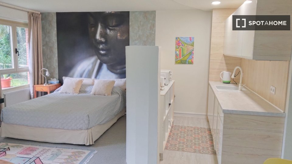 Este estudio completamente amueblado en Aiete, Donostia, es ideal para profesionales, estudiantes y parejas. El estudio está equipado con comodidades como lavadora, secadora, TV y cocina equipada con horno. No se permite fumar ni se admiten mascotas. El estudio no ha sido verificado por Spotahome, pero todos los propietarios que aparecen en Spotahome han sido cuidadosamente seleccionados.