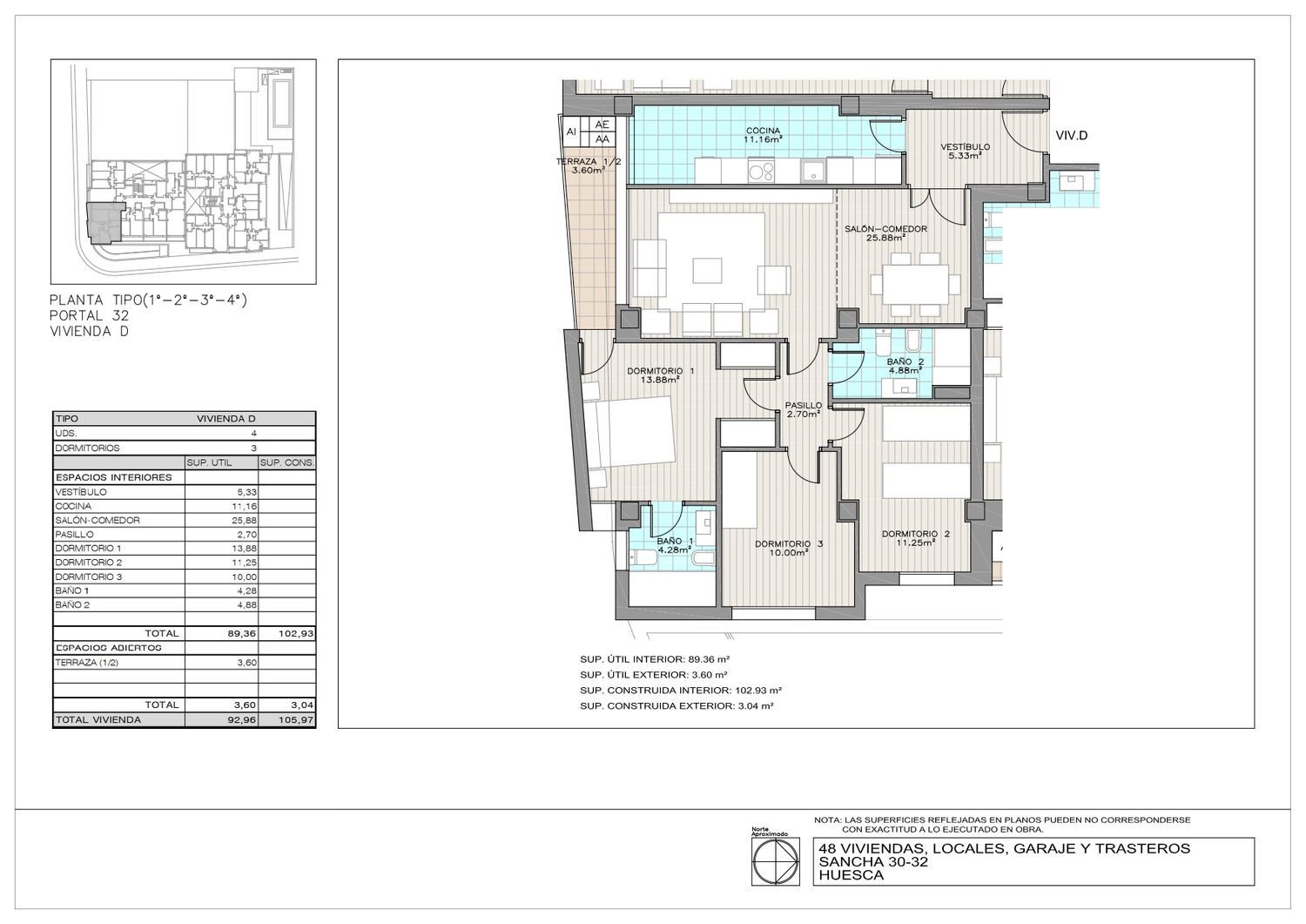 ¡ULTIMAS UNIDADES, ENTREGA INMEDIATA!Viviendas de lujo en zona Los Olivos (Huesca).SANCHA 30 – 32 RESIDENCE: Promoción de viviendas de 2, 3 y 4 habitaciones y espectaculares áticos dúplex, garajes y trasteros, piscina comunitaria, aerotermia y primeras calidades.Este piso tiene 3 dormitorios, uno de ellos tipo suite con baño propio y armarios empotrados; 2 baños, cocina y salón de 26 m2 con terraza. Piso totalmente exterior y muy luminoso con grandes ventanales. El precio incluye garaje y trastero en el edificio.Certificación energética A, fachadas con revestimiento mediante SATE e instalación de aerotermia individual de alta temperatura con la que se consigue:- Calefacción mediante radiadores- ACS- Aire acondicionado por conductos en toda la vivienda.