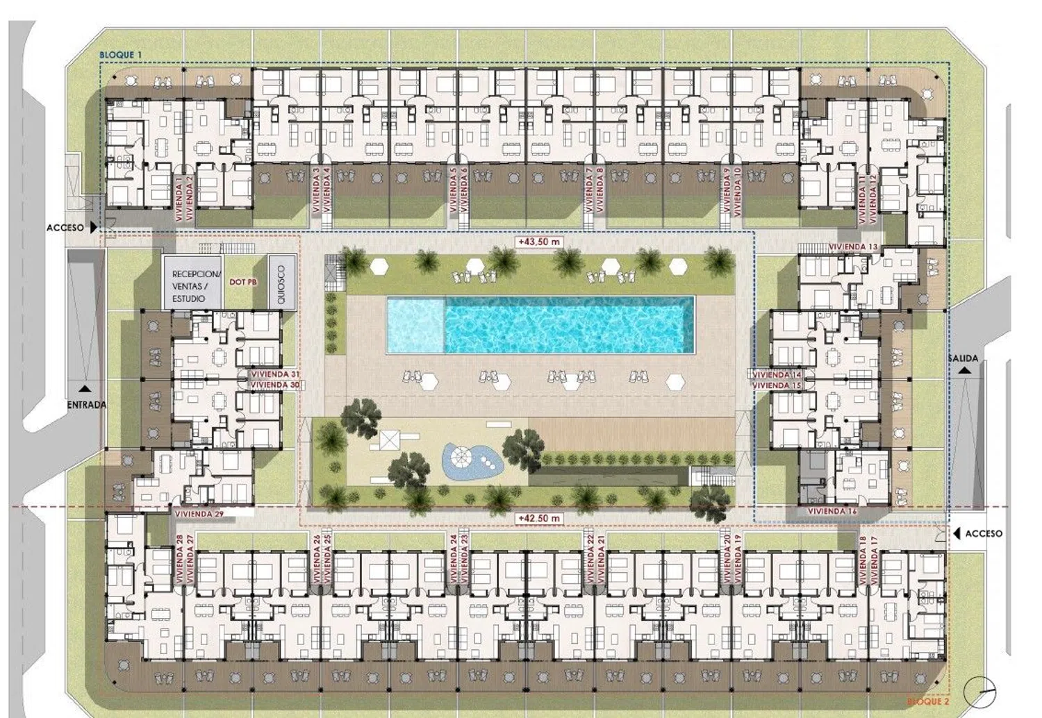 Апартаменты на первом этаже предлагают просторные крытые террасы и приватные сады, в то время как на верхних этажах имеются широкие террасы и солярии, идеально подходящие для наслаждения исключительным климатом острова. Каждое жилье оборудовано полностью меблированной кухней, современными ванными комнатами и системой центрального кондиционирования, гарантирующими комфорт круглый год.