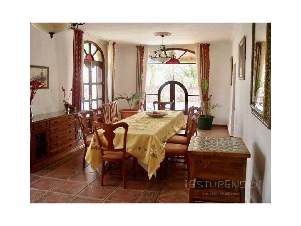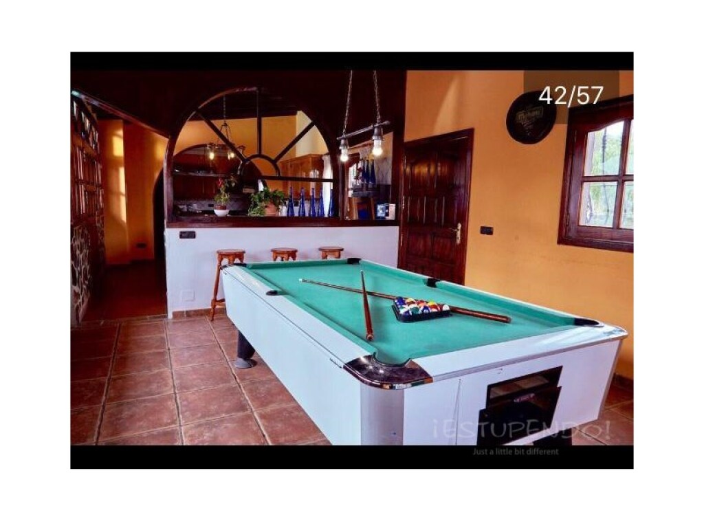 La propiedad consta de 9 habitaciones, 4 baños, una gran cocina con comedor separado, sala de juegos con mesa de billar, un comedor muy grande con capacidad para 14 personas cómodamente y un enorme salón.