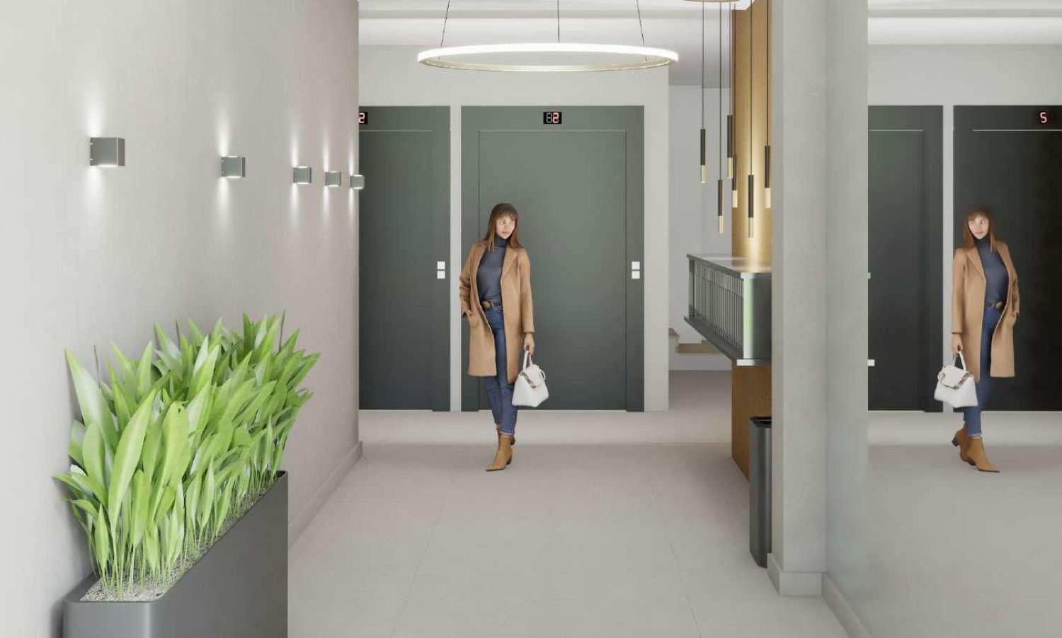 В здании: