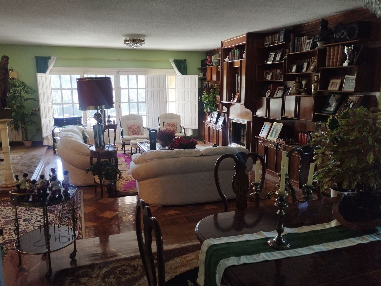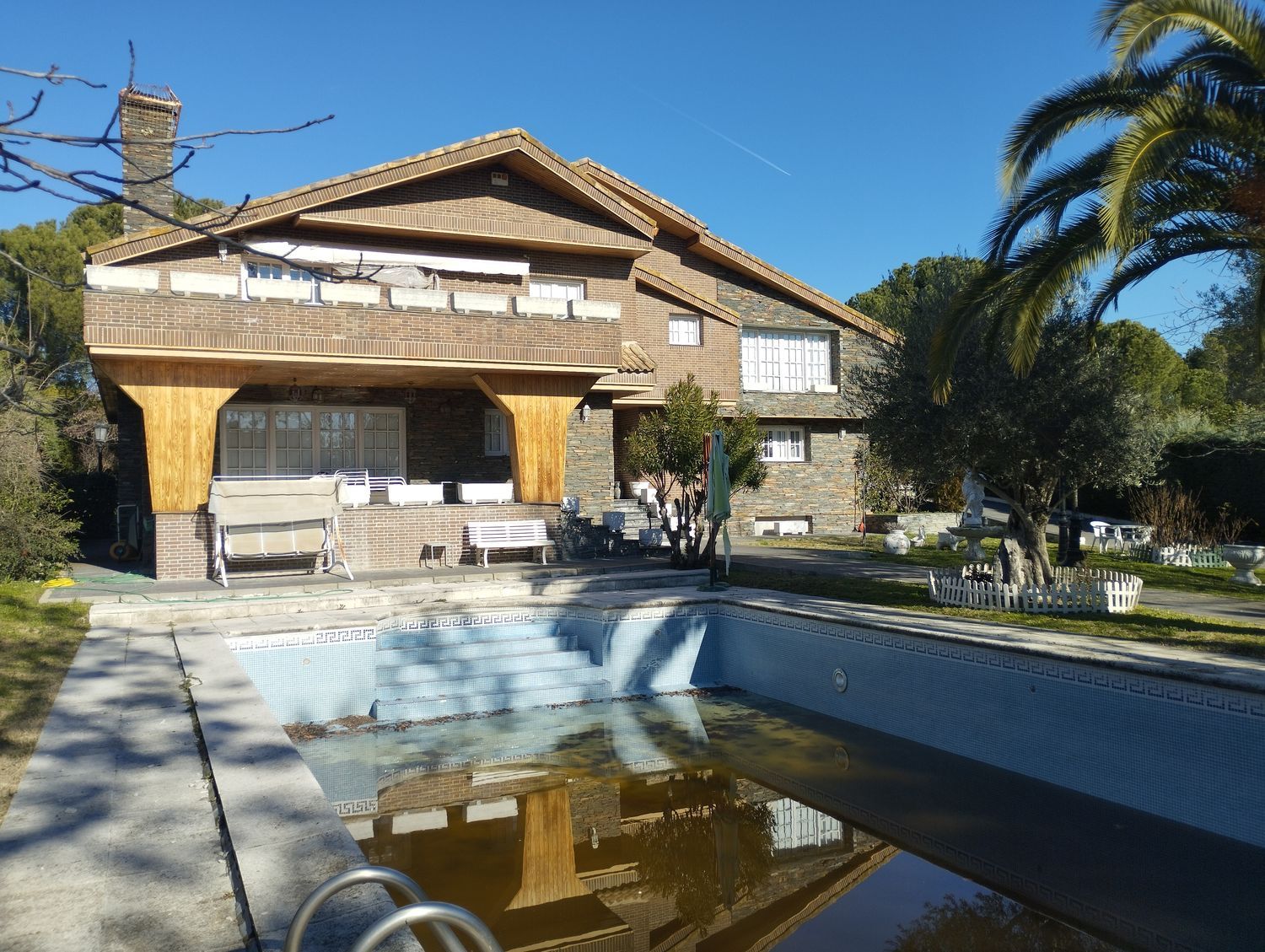 Espléndido chalet independiente en la calle principal de la Urbanización Bonanza. Gran parcela de 2.118 m2 con piscina de 75 m2, estanque, zona BBQ, cancha de baloncesto y precioso jardín muy consolidado. La casa está en perfectas condiciones aunque necesita alguna pequeña reparación de mantenimiento, sobre todo en cuanto a la carpintería exterior. Las ventanas son de madera con doble cristal y contraventanas. Los suelos son de parquet salvo en los baños y la cocina que son de cerámica. Calefacción y agua caliente mediante caldera de gasoil.Planta baja: Enorme salón-comedor con tres ambientes y chimenea, muy amplia cocina, dormitorio de servicio con baño incorporado y amplio baño de cortesía. Garaje para dos coches.Planta alta: Preciosa sala con chimenea. Suite principal con chimenea muy espaciosa con varios ambientes y baño incorporado. Dormitorio con baño incorporado y apartamento que incluye dos dormitorios y un baño.Semisótano: Espaciosa sala con tres ambientes, sala de juegos, bodega-bar recreativo, baño, gran trastero y cuarto de calderas.IBI: 3.500 m2 aproximadamente.