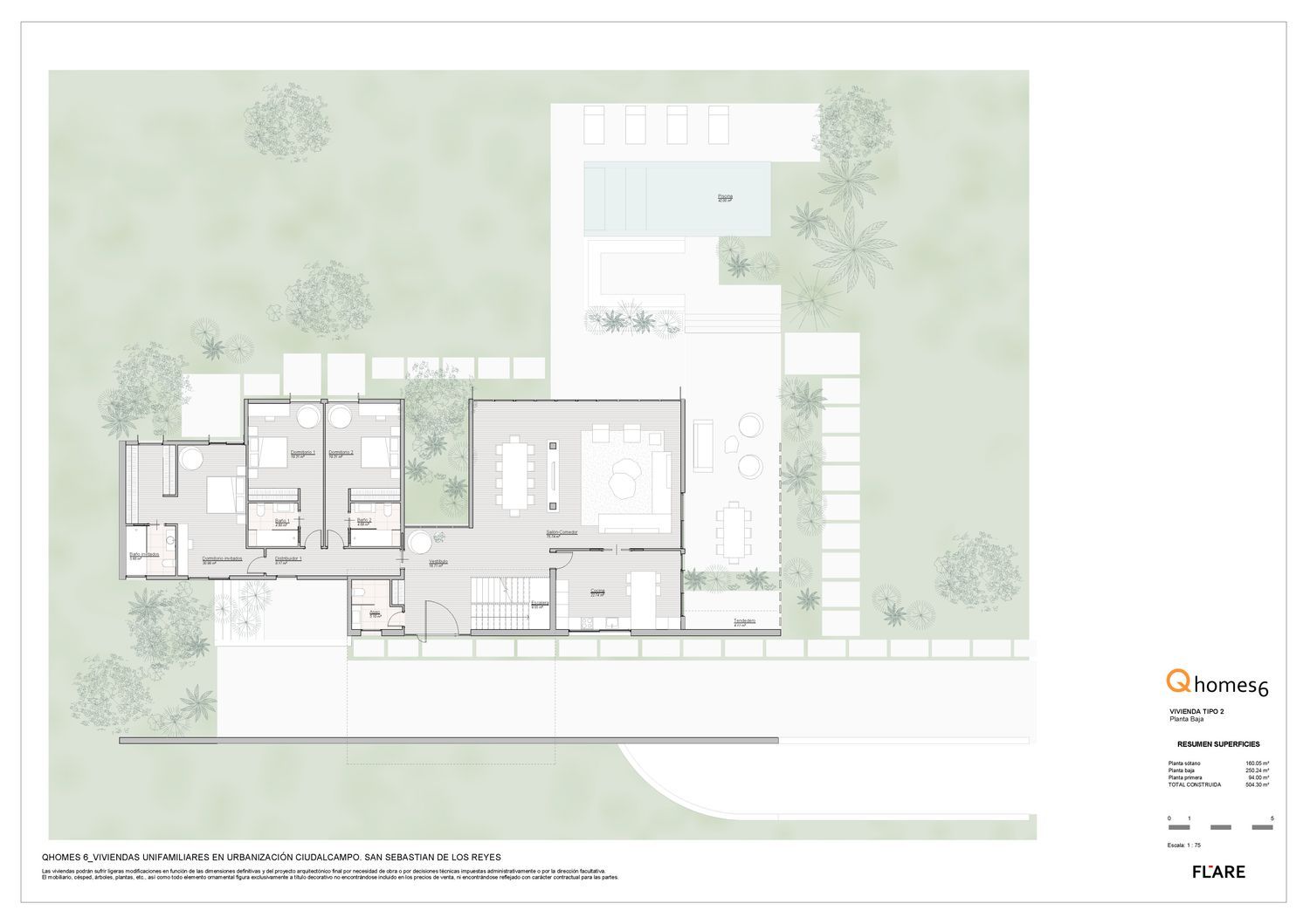 En Ciudalcampo, Blossom presenta Qhomes 6.6 Viviendas independientes en un excepcional emplazamiento, en parcelas desde 2.500 m2 hasta los 4.000 m2 El singular diseño de las viviendas tiene su origen en la unión entre un minucioso análisis del entorno natural en el que se ubica y las excepcionales características que cada Qhome debe atesorar. El juego flexible de volúmenes que caracteriza esta promoción permite sacar el máximo partido al entorno, consiguiendo unas increíbles vistas desde todas las viviendas y siempre respetando la valiosa arboleda preexistente. El resultado es una armoniosa composición geométrica, elegante y rotunda, integrada en un paisaje verde donde cada vivienda conserva su privacidad gracias a la orientación y composición de las zonas comunes y zonas privadas. Los grandes ventanales y la orientación de los mismos hacen que la luz natural bañe cada estancia, consiguiendo además una transición interior/exterior única. La organización interna de la vivienda se genera desde el vestíbulo principal, que es el gran protagonista. Un amplio espacio de entrada con un gran ventanal a doble altura y vistas al jardín divide la zona de día de la zona de noche. El proyecto ofrece eficiencia energética y sostenibilidad ambiental.Qhomes ofrece la posibilidad de personalización tanto en diseño interior como en los acabados, incluso ampliación del programa de vivienda.