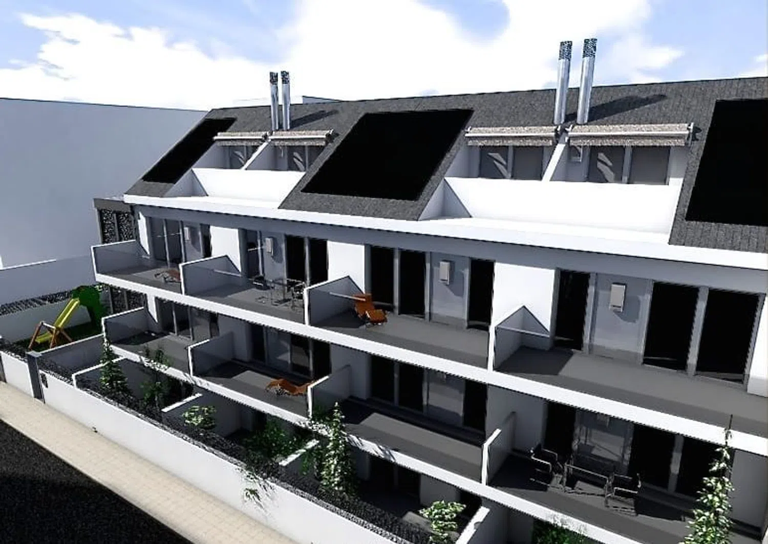 La promoción está situada en Collado Villalba, en la Calle Pardo Santallana 44, una zona tranquila y bien comunicada con una amplia variedad de servicios cercanos. Se trata de un edificio de obra nueva que consta de 12 viviendas distribuidas en tres tipos: 4 viviendas en planta baja: Cada una cuenta con un dormitorio, un cuarto de baño completo, un jardín privado y una plaza de garaje. Son ideales para quienes buscan comodidad en una sola planta con acceso directo al exterior. 4 pisos en planta intermedia: Estos apartamentos, también de un dormitorio y un baño completo, incluyen una terraza privada, perfecta para disfrutar de un espacio al aire libre adicional. Cada piso dispone de una plaza de garaje. 4 dúplex en las plantas superiores: Estas viviendas de dos niveles ofrecen mayor amplitud, con dos dormitorios y un baño completo. Además, disponen de una terraza privada y una plaza de garaje por vivienda, brindando una solución perfecta para familias o aquellos que buscan más espacio. La zona donde se encuentra el edificio ofrece tranquilidad sin renunciar a la cercanía de servicios esenciales como supermercados, colegios, centros de salud, y áreas verdes. Además, goza de excelentes comunicaciones por transporte público y vías principales, lo que facilita el acceso tanto al centro de Collado Villalba como a otras zonas de la Comunidad de Madrid. Esta promoción es ideal para quienes buscan una vida tranquila, en una ubicación estratégica y bien equipada. ADVERTENCIA: Los planos comerciales están sujetos a posibles modificaciones debido a obras en curso o instrucciones emitidas por la dirección. Se recomienda consultar con el equipo responsable para obtener la información más actualizada.