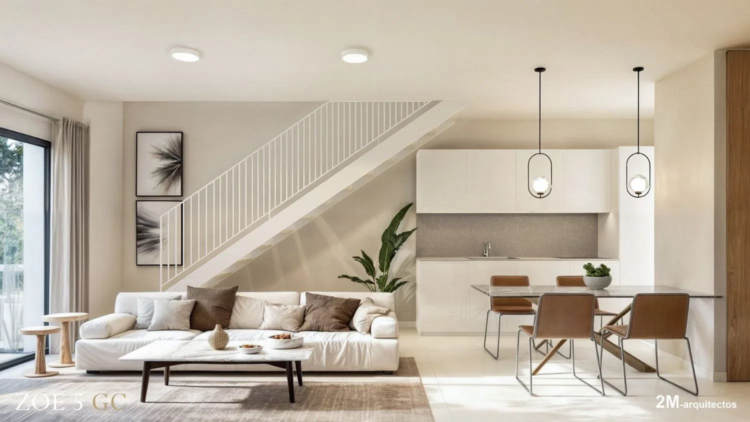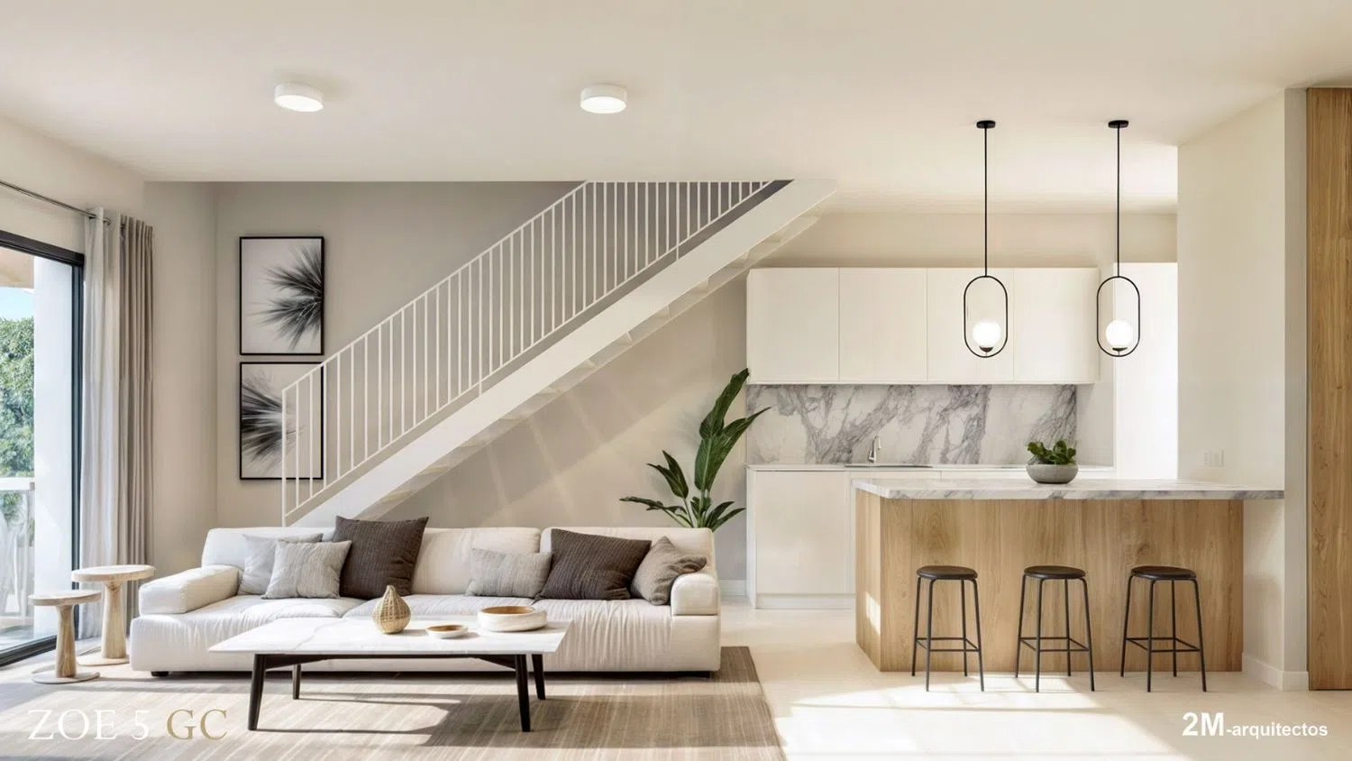 Первый этаж: Просторная гостинная-столовая с интегрированной кухней создает светлую и открытую атмосферу для семейных ужинов и встреч с друзьями. В зависимости от выбранной вами конфигурации, вам будет доступна терраса с настилом или даже с частным садом, идеально подходящая для отдыха на свежем воздухе.