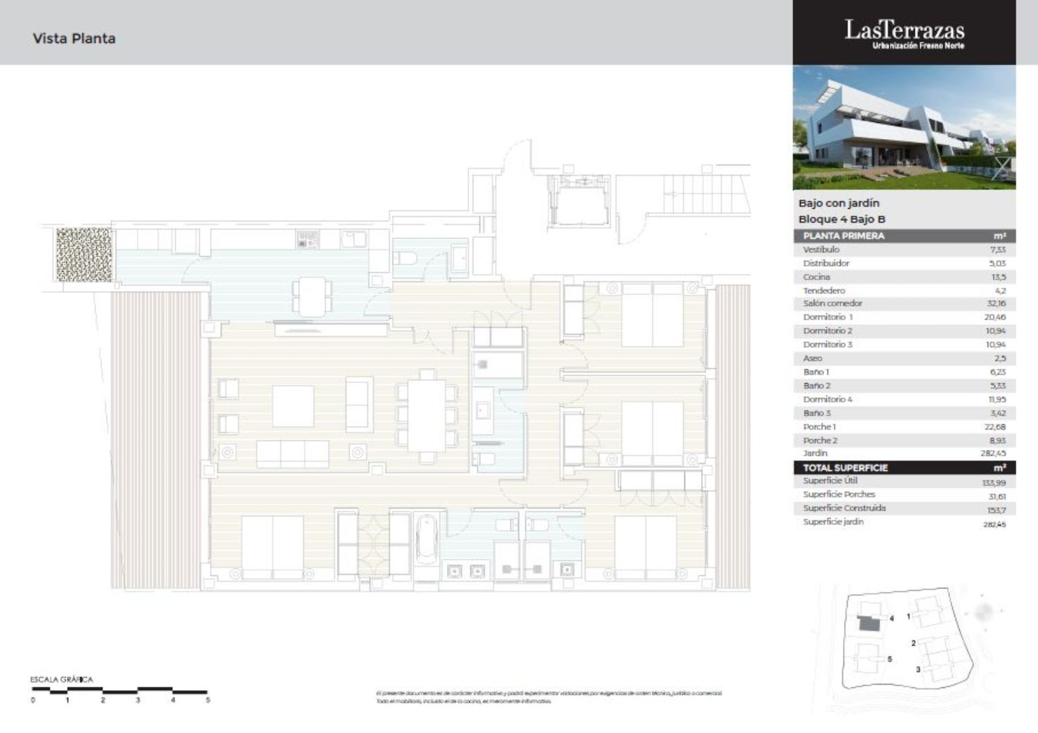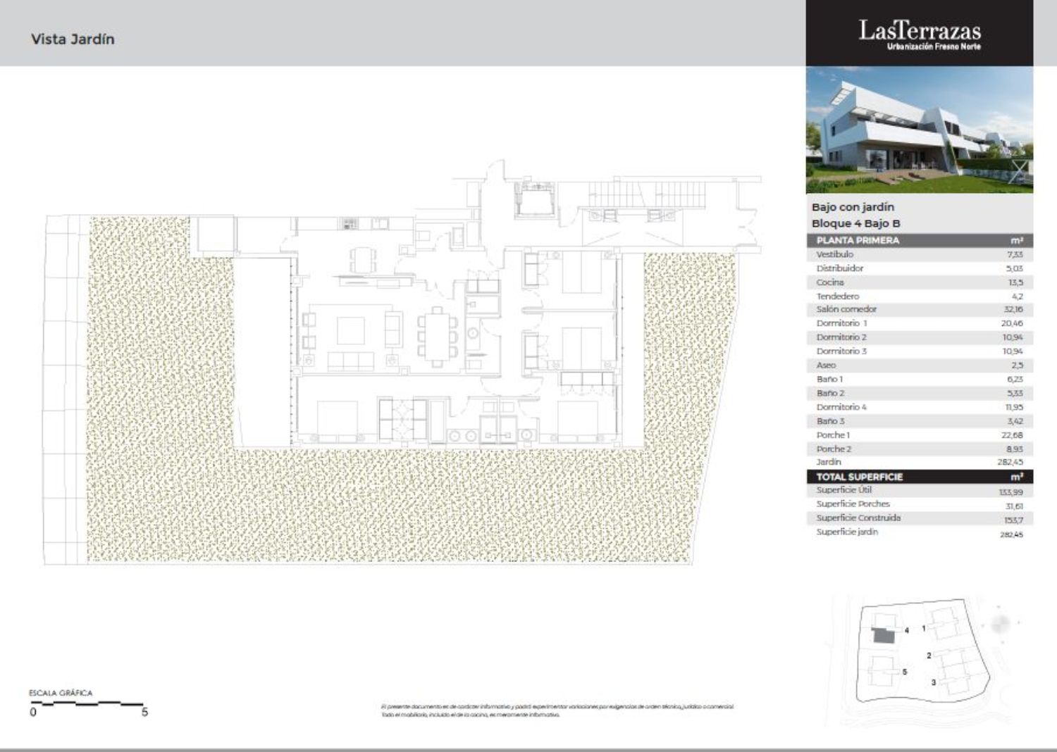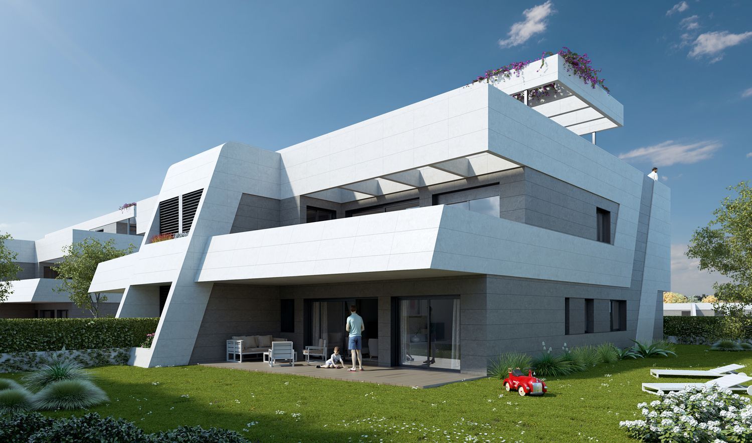 PRÓXIMA ENTREGALas Terrazas de Fresno Norte, en San Sebastián de los Reyes, es un residencial privado compuesto por 19 viviendas con zonas comunes, piscina, zonas verdes, solarium, zona infantil, pista deportiva y conserjería. El edificio está compuesto por viviendas en planta baja con amplios jardines privados de hasta 445 m2 y áticos dúplex de 165 m2 con terrazas de hasta 127 m2. Todas ellas distribuidas en 4 dormitorios con 3 baños y un aseo de cortesía. Llevan anexas 3 plazas de garaje y un trastero. Calidades excelentes, con aerotermia y suelo radiante refrescante que hace que la vivienda haya obtenido la máxima calificación energética “A”. Además, cuenta con cocina completamente amueblada con electrodomésticos, armarios empotrados, puerta blindada, acristalamiento de doble vidrio en todas las ventanas, control de climatización, etc. La urbanización Fuente del Fresno, es una de las más prestigiosas y de mayor calidad de toda el área metropolitana de Madrid. Al norte del término municipal de San Sebastián de los Reyes. Fundamentalmente residencial, dotada de todo tipo de servicios y equipamientos (escolar, deportivo, comercial, etc. )Bien comunicado por carreteras A-1, M-40, M-12 (aeropuerto) y R-2 Líneas de autobuses urbanos e interurbanos.Renfe cercanías Línea C4.A 9 km del aeropuerto.