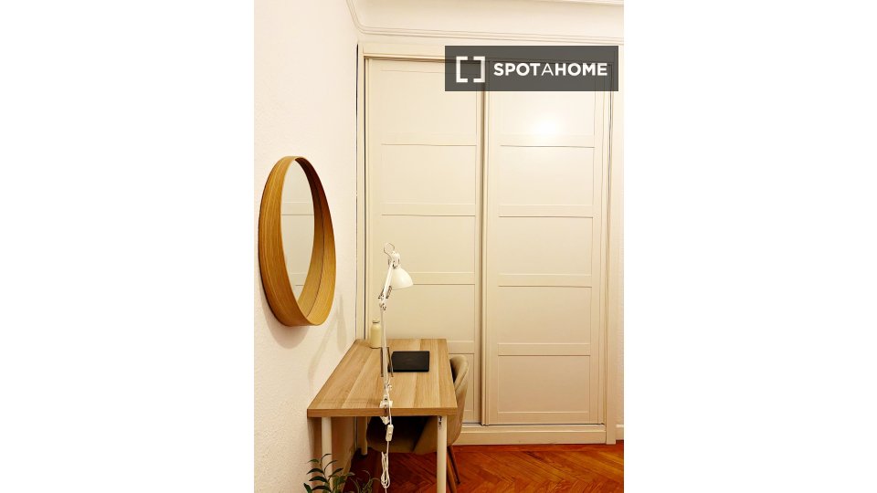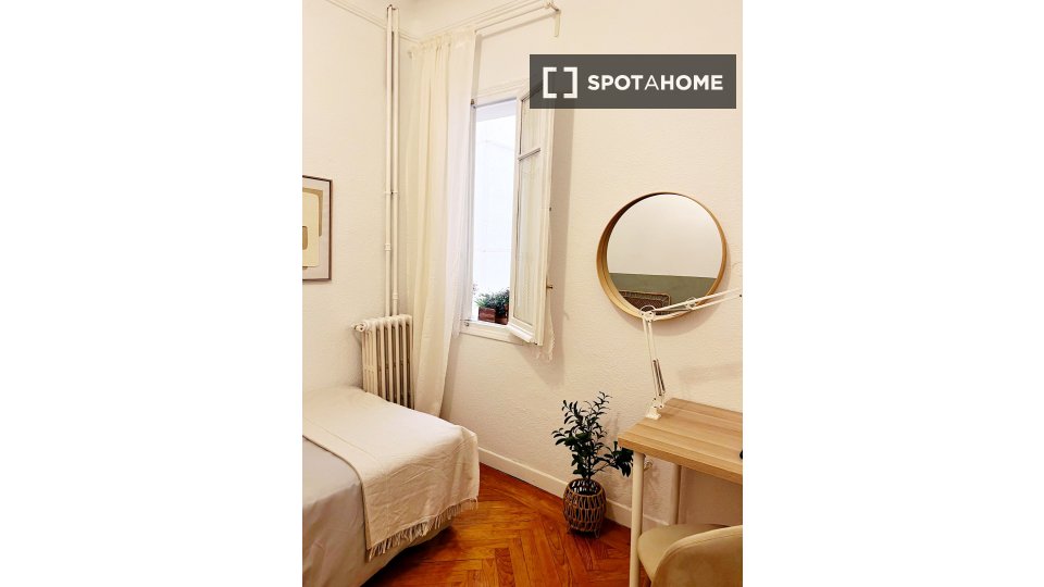 Explora esta acogedora habitación en un piso compartido de 6 habitaciones en Fuente del Berro, Madrid. Ideal para profesionales, estudiantes y parejas, esta propiedad exterior cuenta con muebles, cocina equipada con lavavajillas y horno, calefacción central y verificación de Spotahome para tu tranquilidad. Los gastos de agua, luz, gas y wifi están incluidos, lo que la convierte en una opción ideal para los habitantes de la ciudad.