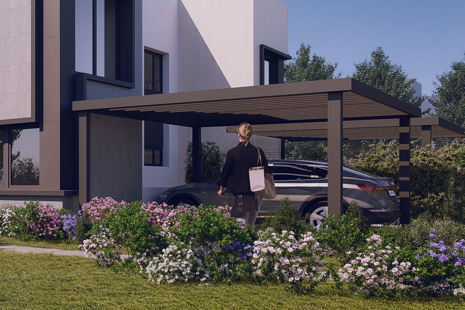 Каждый дом продуман до мелочей, чтобы удовлетворить все потребности и соответствовать любому стилю жизни. Просторные и светлые кухни предлагают пространство для семейных трапез, а спальня на первом этаже может быть использована как кабинет. На втором этаже расположены четыре спальни, с возможностью их объединения в три спальни, и главная спальня с обширной гардеробной. Гостиная и столовая зона плавно переходят в сад через большие окна.
