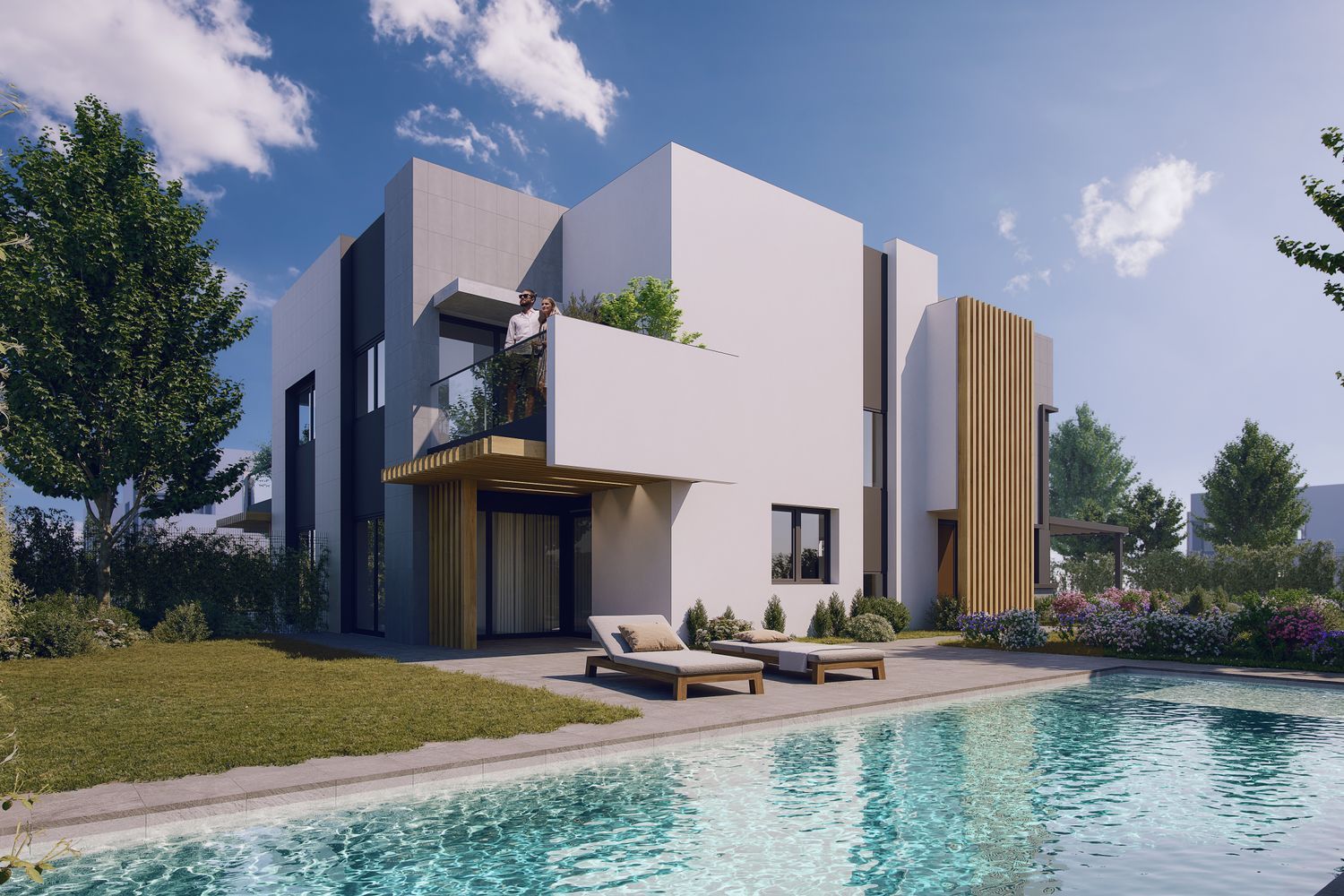 Цена на дома варьируется от 1 298 281 € до 1 316 317 € при площади 275 м² и количестве спален, равном пяти.