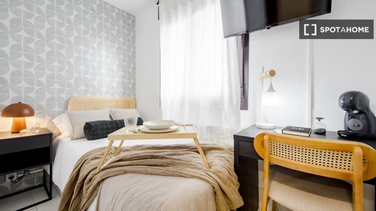 Este apartamento amueblado de 1 dormitorio está disponible para alquilar en Lista, Madrid. Incluye aire acondicionado, cocina equipada con horno y lavadora compartida. Nota: Las facturas deb...
