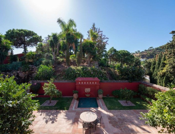 Bienvenidos a este encantador palacio andaluz en El madroñal. Disfrute del verdadero carácter del estilo de vida andaluz. Ubicado con gracia sobre la costa mediterránea bañada por el sol. Ubicada en el acogedor abrazo de la Urbanización Madroñal, justo al lado de Ronda Road, es más que una simple casa; es una escapada de solo 10 minutos a la playa y un corto trayecto al encantador casco antiguo de Marbella, repleto de historia.Ingrese a esta hermosa casa y sentirá el abrazo del confort aristocrático repartido en sus generosos 950 metros cuadrados. Con seis suntuosas habitaciones con baño y camas tamaño king y una habitación muy acogedora con dos camas individuales, hay espacio para todos. La combinación de diseño tradicional español y toques modernos le brinda un espacio habitable que es a la vez encantadoramente rústico y muy cómodo.Pero no se trata sólo del interior. Los terrenos de Haven son una declaración de grandeza, con jardines meticulosamente diseñados, fuentes serenas y cascadas divertidas, todos conspirando para crear una atmósfera pacífica. Una elegante pérgola y una espectacular piscina al aire libre invitan a una relajación y diversión infinitas bajo el cielo andaluz.Repartido en una extensa parcela de 6.941 metros cuadrados, Haven le ofrece impresionantes vistas de El Madroñal y el mar, una vista exclusiva de esta finca. A pesar de su atractivo atemporal, Haven está listo para renacer. Está buscando un propietario visionario que dé nueva vida a sus grandes espacios, imaginando un palacio moderno a través de una inversión y un refinamiento bien pensados.Sí, la villa lleva con orgullo las marcas del tiempo, pero su potencial para un nuevo comienzo es colosal: una obra maestra contemporánea que no pierde ni una pizca de su conmovedor encanto español. Es más que un hogar; es una invitación a reinventar el lujo y hacer historia en el corazón de esta encantadora escapada costera.