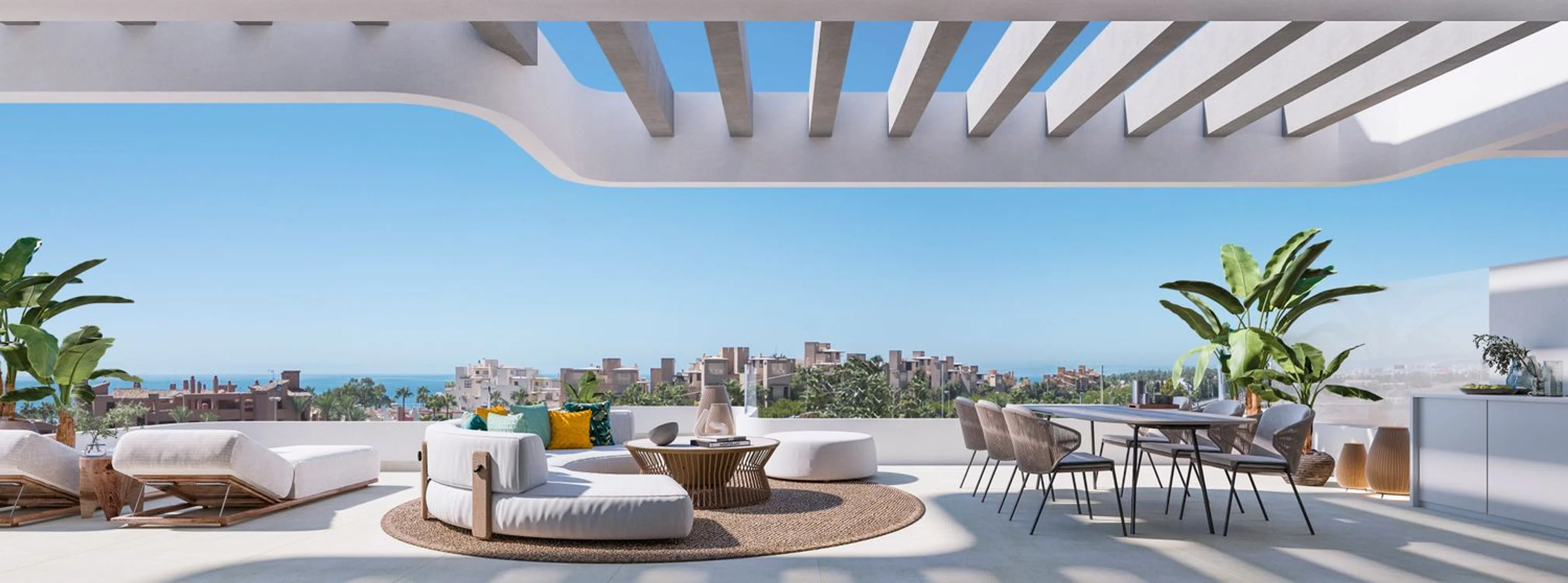 Lagumare41 se encuentra ubicado en Estepona, uno de los municipios más populares y con mayor proyección de la Costa de Sol. En el entorno de esta promoción se encuentran algunos de los campos de golf más prestigiosos de Europa, la oferta de restauración y hostelería más completa, estupendas playas y exclusivas zonas comerciales. El residencial Lagumare41 está caracterizado por su excelente comunicación ya que, en coche se encuentra a 5 minutos del corazón de Estepona, a 10 minutos de Puerto Banús y a 20 de Marbella. El acceso es fácil en coche, taxi o transporte público y se encuentra a tan sólo 50 minutos (80 km) del Aeropuerto Internacional de Málaga y a 43 minutos (50 km) del Aeropuerto Internacional de Gibraltar. La promoción está formada por 6 bloques de 3 alturas con: · Bajos con jardín y posibilidad de piscina privada · Planta intermedia · Áticos con solárium y terrazas de 108 m² Todas las viviendas cuentan con plaza de aparcamiento y trastero. Lagumare es un residencial con una arquitectura muy cuidada. Destaca por la elegancia de su diseño, apostando por el blanco que lo integra por completo en el ambiente mediterráneo sin renunciar a una imagen contemporánea de líneas limpias y fluidas. Tiene espacios interiores amplios y perfectamente distribuidos y grandes acristalamientos para garantizar luz natural. Luz, clima y confort reunidos en una promoción de máxima calidad. Las zonas comunes han sido diseñadas para tener un espacio en el que disfrutar y relajarse, desconectar de la rutina y sobre todo para aumentar la calidad de vida. Podrás escoger entre bañarte en la piscina, descansar en el amplio jardín, hacer yoga, cuidarte en el gimnasio al aire libre.. . todo en un recinto cerrado y seguro. Estos son los detalles que marcan la diferencia.