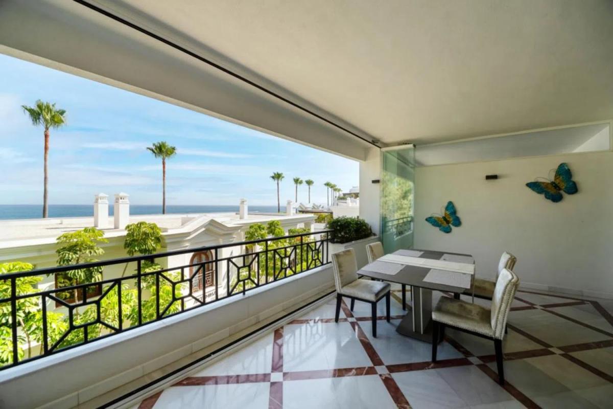 Hermoso apartamento de 3 dormitorios y 3 baños en el prestigioso complejo en primera línea de playa Doncella Beach, ubicado a un agradable paseo del pintoresco puerto de Estepona y del animado centro de la ciudad. Esta popular urbanización ofrece seguridad las 24 horas, jardines tropicales bien cuidados, piscinas exteriores y climatizadas interiores, gimnasio, jacuzzi y sauna, así como salida directa a la playa, el paseo marítimo y un fantástico restaurante. En esta propiedad de lujo bien equipada, encontrará todo el confort y la comodidad, incluyendo materiales y acabados de alta calidad, armarios empotrados y calefacción por suelo radiante en todo el apartamento. También podrá disfrutar durante todo el año de la espaciosa terraza de 41 m² con vistas al mar y cortinas de cristal plegables. El apartamento incluye aparcamiento subterráneo y trastero. Esta elegante propiedad está disponible completamente amueblada y lista para entrar a vivir.