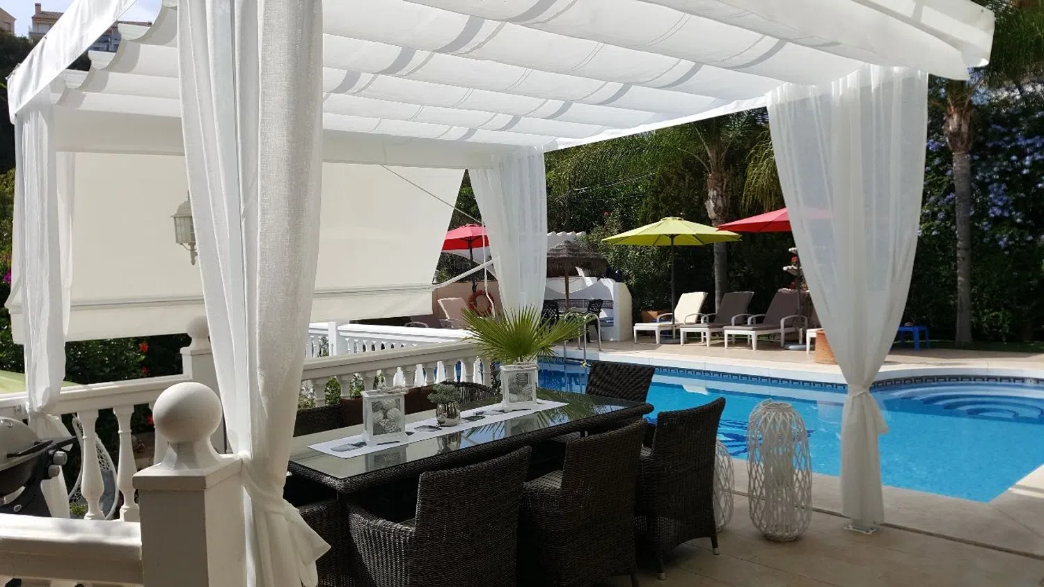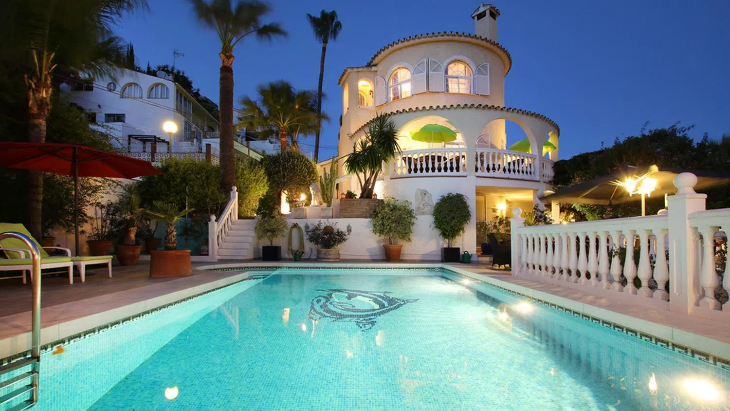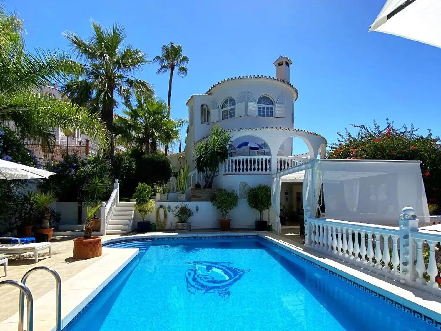 La villa es perfecta para familias para uso privado así como para una inversión comercial. La villa con vistas al mar, totalmente climatizada, se encuentra en FUENGIROLA (entre Málaga y Marbella) y es una buena oportunidad de inversión en una ubicación privilegiada. Actualmente se utiliza de forma privada y como propiedad de inversión para alquileres comerciales de vacaciones con buenos ingresos por alquiler. La base de clientes y la administración de la propiedad podrían hacerse cargo a pedido. El permiso para alquileres vacacionales comerciales está disponible. La villa, bien mantenida, ofrece impresionantes vistas al mar y está orientada al sur, hacia el mar, a sólo 800 metros de la ciudad y de los kilómetros de playa de arena bien cuidada, en una ubicación céntrica y tranquila. La propiedad no es visible, su privacidad está protegida. La casa tiene dos apartamentos independientes con entrada propia y garaje doble cada uno. En la 1ª planta hay un moderno apartamento (52 m2) con 1 dormitorio, baño, cocina abierta con comedor y salón con chimenea y 2 televisores, fantásticas vistas al mar abierto y a la ciudad. En la planta baja (160 m²) hay un salón con chimenea, TV, comedor abierto y acceso directo al balcón con muebles de jardín y vistas directas al mar. 4 amplios dormitorios con armarios empotrados, caja fuerte, TV con programas de todos los países + Netflix. 3 cuartos de baño (sauna de vapor, bañera, ducha, WC) vista al jardín florido. La cocina totalmente equipada con numerosos electrodomésticos no deja nada que desear. La casa está equipada con bonitos muebles, al igual que la zona exterior. El cuidado jardín garantiza total privacidad en medio de una gran piscina bajo las palmeras, que se ilumina por la noche. En el exterior hay 4 terrazas bien equipadas, todas con vistas al mar. Desde esta propiedad disfrute de las fantásticas vistas al mar y de las románticas puestas de sol sobre el mar con una buena copa de vino. La Costa Del Sol tiene sol los 360 días del año, disfruta del buen y saludable clima. En los meses de noviembre a abril registramos temperaturas de hasta 25+. Podrás esquiar en la “Sierra Nevada” (distancia 2 horas) o tomar el sol en la playa. Todo es posible. Inventario: La villa dispone de aire acondicionado, dormitorios con ventiladores de techo adicionales, calefacción de bajo consumo, 2 garajes dobles, ventanas de doble acristalamiento con persianas, alarma/videovigilancia, chimeneas eléctricas con mando a distancia, buenas instalaciones, gran piscina, ducha solar con fuentes de agua caliente., esculturas decorativas de leones y budas, un jardín muy cuidado con palmeras, sistema de riego automático, iluminación exterior individual de bajo consumo, 4 terrazas, sala adicional con aparatos de fitness, un total de 2 cocinas totalmente equipadas, 5 dormitorios con armarios empotrados. en armarios, 6 televisores, caja fuerte, 4 baños (bañera, sauna de vapor), 2 salones con comedor abierto, 3 trasteros, 3 lavadoras, caseta de piscina gresite. Certificado energético disponible, conexión WiFi rápida (fibra óptica). Ubicación: La propiedad está ubicada en FUENGIROLA, una animada ciudad costera con kilómetros de playas de arena bien cuidadas y una excelente infraestructura que cubre todas las necesidades. Numerosos mercados están activos en verano e invierno. El centro de la ciudad y el puerto deportivo están a sólo 3 minutos en coche de la casa. En las inmediaciones se encuentran restaurantes, bares, farmacias, escuelas, universidades de muchos países y guarderías, así como numerosos grandes supermercados y lujosos centros comerciales. No hay límites para las actividades de ocio en el agua y en tierra. La meca absoluta del golf. Conexión de autobús a 2 minutos de la casa. La villa está a sólo 20 minutos del aeropuerto de Málaga y Marbella.