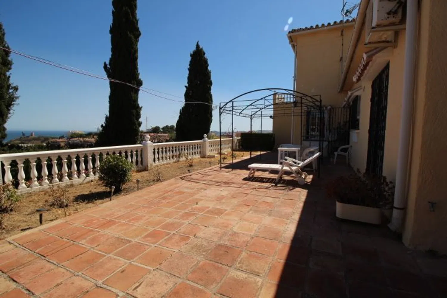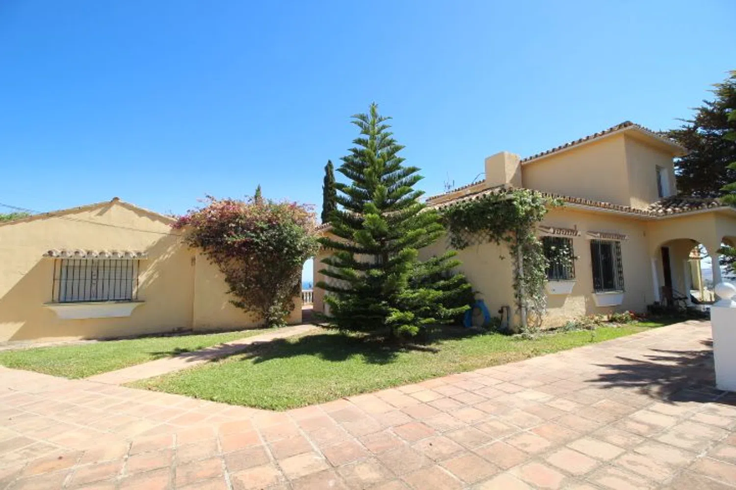Disponible magnifica villa en Fuengirola en la zona de Torreblanca. Villa de 2 plantas, en planta baja encontramos gran salón, perfectamente diferenciadas la zona de comedor, sala de estar y actualmente una zona destinada a despacho, un aseo y un baño completo y cocina independiente con ventana hacía el comedor. En la planta alta encontramos un distribuidor muy amplio con zona de vestidor con 4 armarios empotrados, 3 de los 4 dormitorios cuentan con split de aire acondicionado individual, y todos con acceso a la terraza que rodea gran parte de esta planta. Todas las habitaciones son muy amplias, incluido el baño. En la zona norte del jardín encontramos un pequeño estudio con baño, actualmente no tiene cocina pero se podría instalar. La zona exterior está en su mayoría con loseta tradicional de barro, existen zonas ajardinadas con césped como por ejemplo en la piscina; en esta encontramos una mesa tipo merendero. En la calle hay facilidad de aparcamiento, pero la vivienda cuenta con un garaje subterráneo con capacidad para 2 coches y sobra espacio de almacenamiento. En la zona este de la parcela tenemos un espacio independiente para hacer una nueva vivienda.