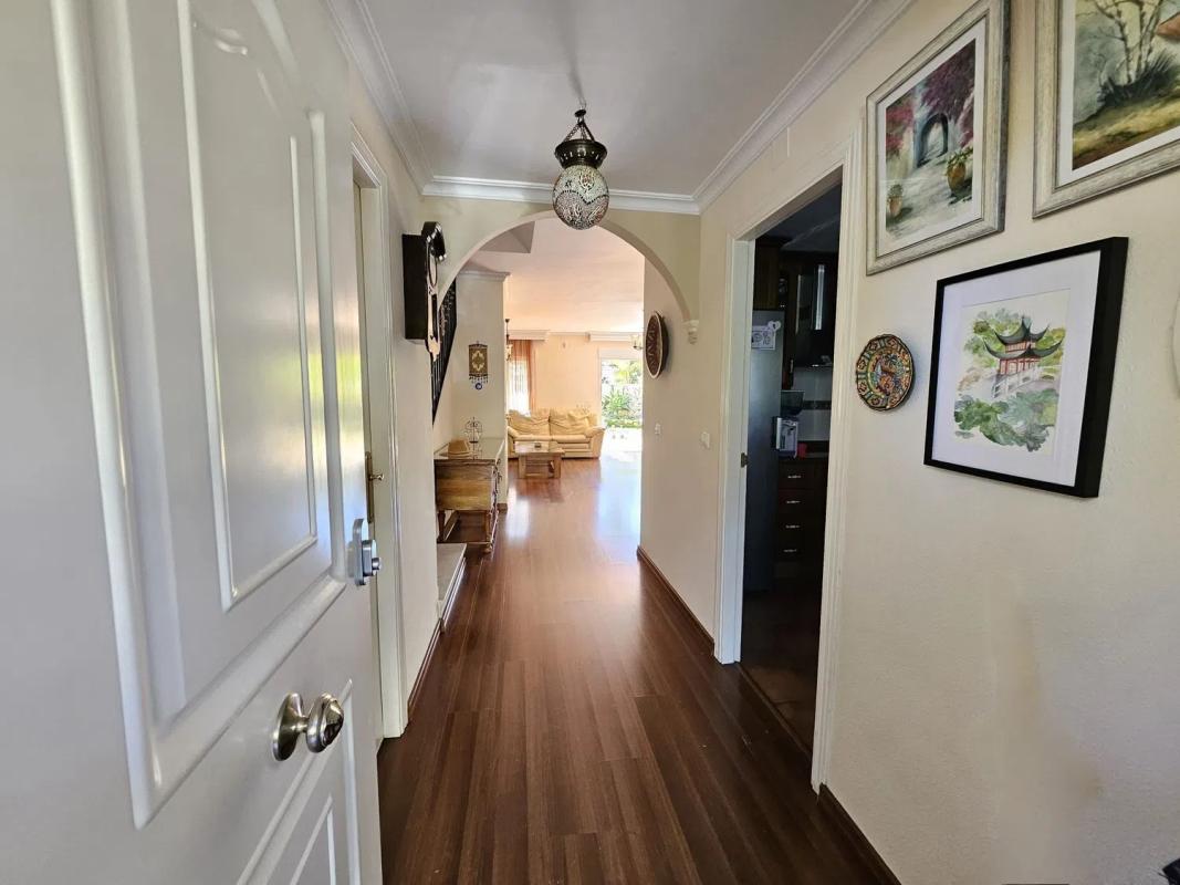 ¡Espectacular casa adosada esquinera con PISCINA " en Los Pacos, Fuengirola! Con 210 m², 5 dormitorios, 4 baños, jardín de 100 m² y buhardilla con posibilidad de más espacio. Ideal para familias, con chimenea, placas solares y garaje. Orientación sur y lista para entrar a vivir En la planta baja, encontrarás una cocina amplia y un salón-comedor espacioso con chimenea, perfecto para reuniones familiares. El dormitorio principal, situado en la primera planta, incluye un vestidor y un baño en suite, además de una terraza privada para disfrutar del sol. Dos dormitorios dobles adicionales completan esta planta. La buhardilla en la segunda planta es impresionante, con un baño completo y la posibilidad de convertirla en dos dormitorios adicionales o un estudio. El semisótano alberga una sala multifuncional que puede adaptarse a tus necesidades. El jardín de 100 m² con terraza es ideal para disfrutar del aire libre y organizar barbacoas. Además, la casa cuenta con placas solares para mayor eficiencia energética y una puerta acorazada para tu seguridad. La calefacción por bomba de frío/calor asegura una temperatura agradable durante todo el año. Con una orientación sur, esta casa adosada se encuentra en excelente estado, construida en 2002 y lista para entrar a vivir. Incluye armarios empotrados, trastero y una plaza de garaje. La clase energética E garantiza un consumo de energía eficiente. ¡No pierdas la oportunidad de vivir en esta maravillosa casa en Los Pacos! Ven a visitarla y enamórate de tu futuro hogar.