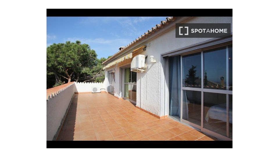 Se alquila chalet amueblado de 5 dormitorios en Av de España. La propiedad cuenta con una gran piscina privada, un amplio jardín, un garaje y parking privado, vistas al mar, una terraza en la planta baja y una en el primer piso y un balcón.