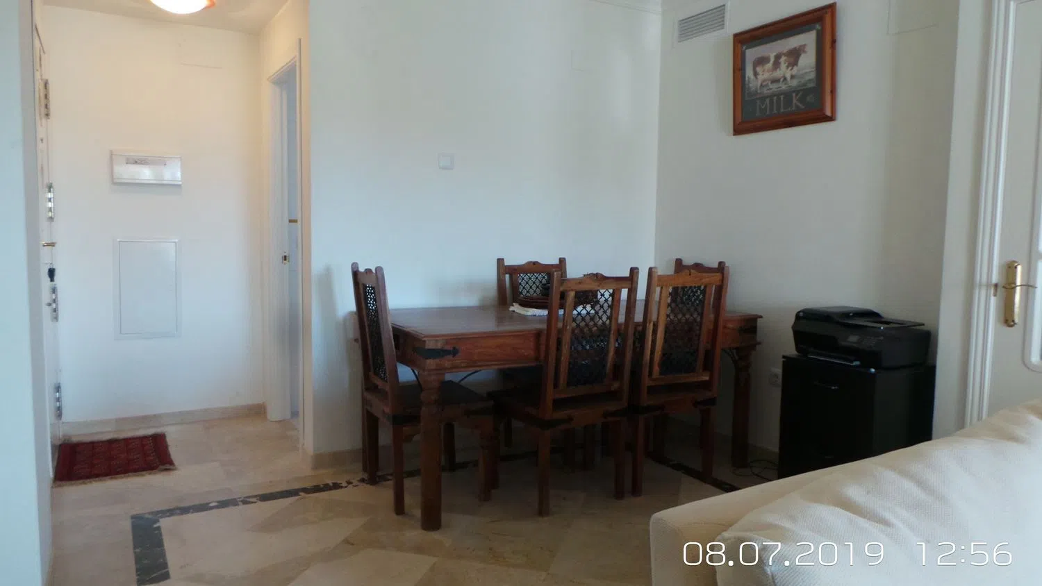 Piso en venta de 89 M2 útiles, tiene 2 dormitorios de buen tamaño con armarios empotrados, suelos de mármo, 2 baños, terraza cubierta de doble acristalamiento, garaje en un recinto cerrado, buen estado, armarios empotrados, orientación sur, con ascensor, piscina y jardines. Urbanizatión recinto, al lado del Duquesa golf y puerto, 5 minutos andando de la playa, 5 minutos andando del supermercado y restaurantes. Vistas del mar de todos habitaciónes. Bien estado, amueblado. Aparcamiento reservado para un coche. Hermosos jardines compartidos y piscina precioso, todo en muy buen orden.