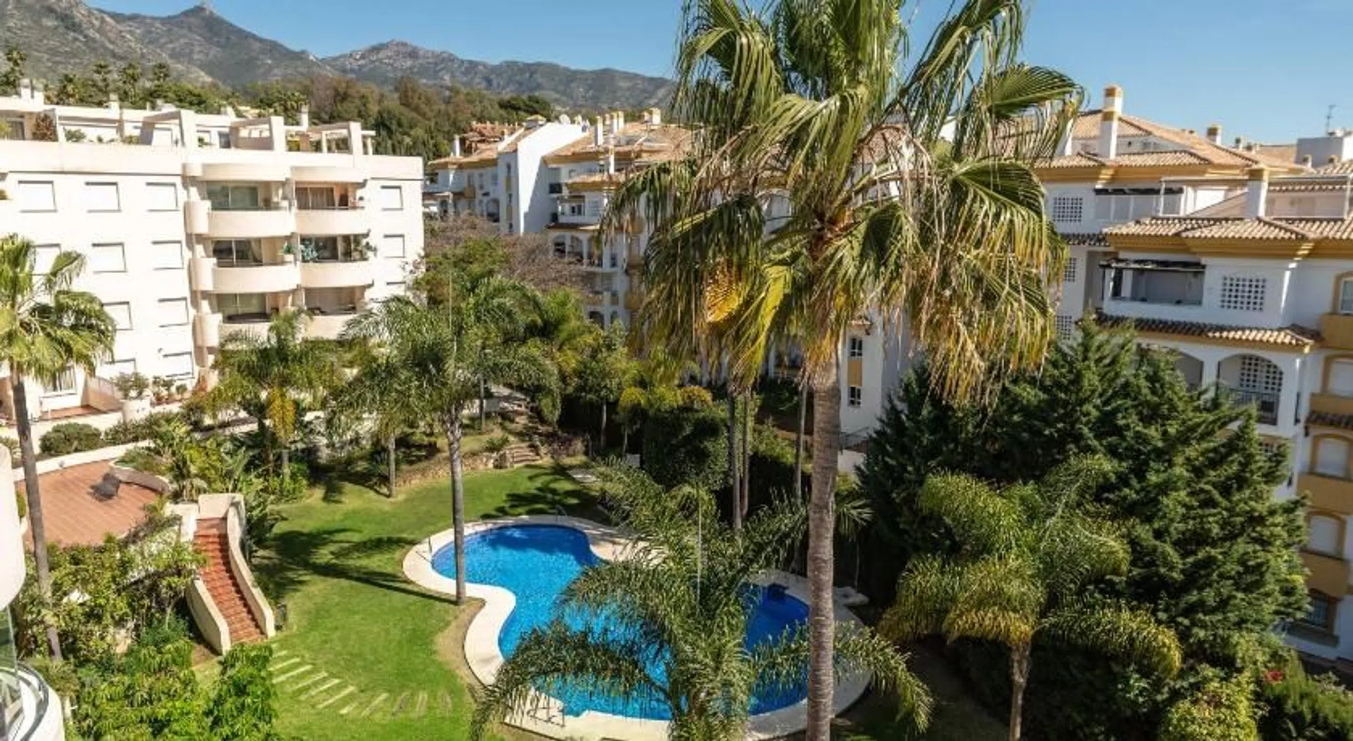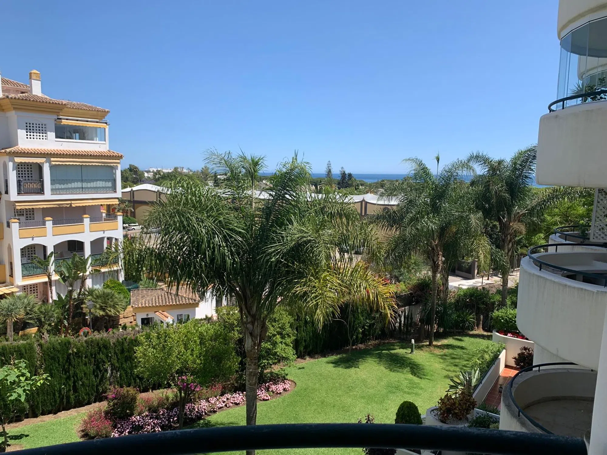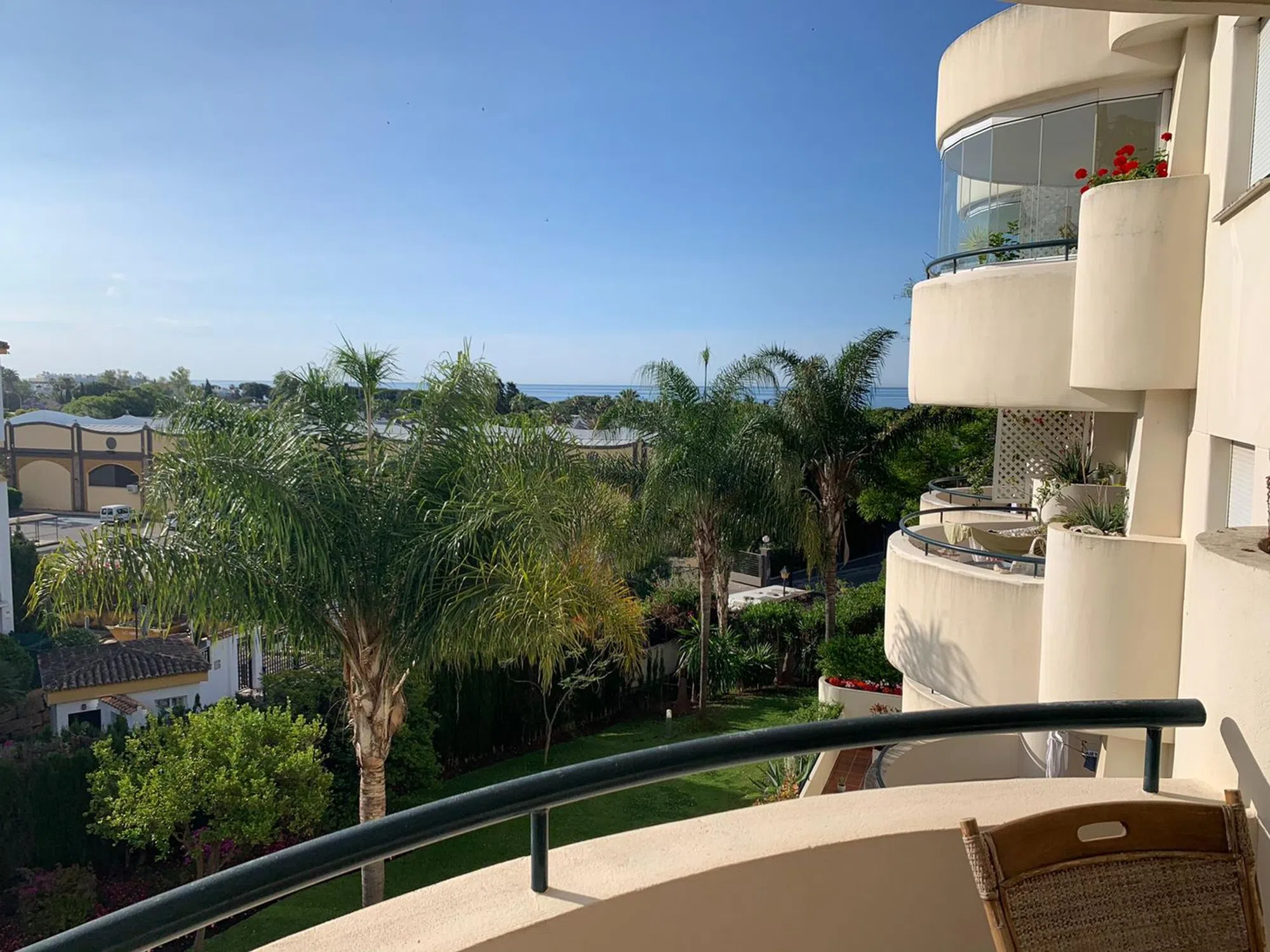 Impresionante apartamento vistas al en plena Milla de Oro de Marbella. Se encuentra en el complejo Gran Ducado, preciosa urbanización con jardines tropicales y piscina comunitaria a 500m de la Playa de Casablanca y Trocadero Playa, a 10 minutos andando del centro de Marbella, casco histórico sus restaurantes, cafeterías y a 10 minutos en coche de Puerto Banús. Este magnífico apartamento de 3 dormitorios se encuentra en plena Milla de Oro estando cerca del mar y de todos los servicios andando. Consta de una entrada con hall, salón/comedor con altos techos y gran terraza con sol de mañana al tener orientación este y preciosas vistas a los jardines comunitarios y piscina. Cocina amplia. Dormitorio principal con armarios empotrados y baño en suite con ducha; 2 dormitorios más que comparten el cuarto de baño. El apartamento dispone de A/C central. Incluye en el precio 1 plaza de garaje y 1 trastero. Características básicas 119 m² construidos, 106 m² útiles 3 habitaciones 2 baños Terraza Balcón Plaza de garaje Armarios empotrados Trastero Orientación sur, este Calefacción individual: Eléctrica Edificio Planta 2ª exterior Con ascensor Equipamiento Aire acondicionado Piscina Zonas verdes Certificado energético.