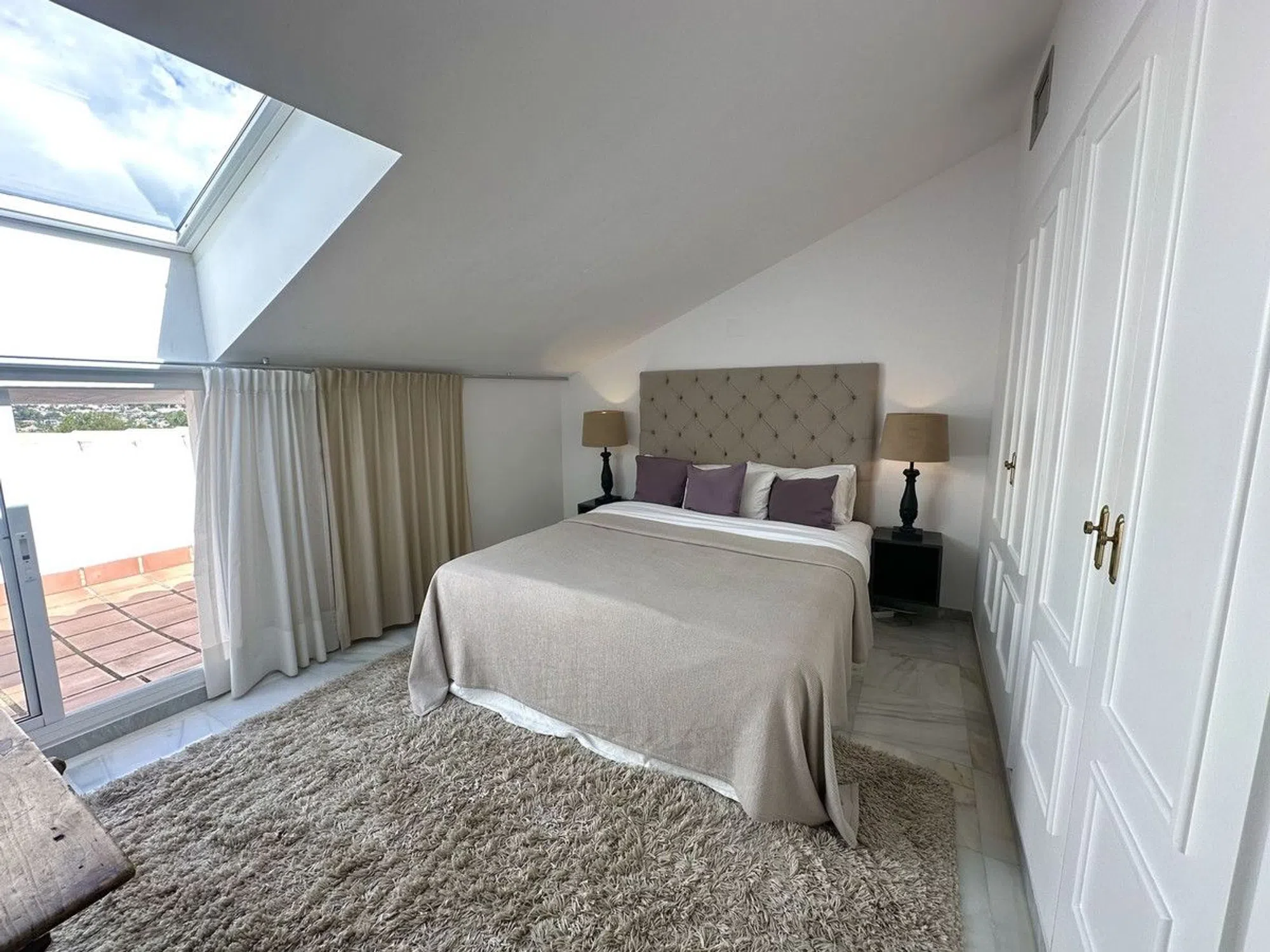 Este elegante ático se encuentra en el corazón de Nueva Andalucía, a poca distancia a pie de todo: encantadores cafés, restaurantes, tiendas y zonas verdes. La propiedad cuenta con una licencia turística vigente y excelente rendimiento en alquileres, lo que la convierte en una opción ideal para quienes buscan una inversión segura y rentable. La zona es muy popular por su alta calidad de vida, con preciosos parques, agradables paseos, proximidad a campos de golf, las playas de Marbella y lugares conocidos como la tienda sueca Spisa y Centro Plaza. Cada sábado, el mercado local atrae a visitantes con una amplia variedad de ropa, decoración y productos artesanales. El apartamento dispone de dos amplios dormitorios, ambos con armarios empotrados, baños privados y balcones propios: uno con sol de tarde y vistas a La Concha, y el otro con sol de mañana y vistas al mar. En los días despejados, incluso se puede apreciar la impresionante silueta de Gibraltar. La cocina, recientemente renovada, combina estilo y funcionalidad, mientras que el salón recibe abundante luz natural. También cuenta con un aseo de invitados para mayor comodidad. La gran terraza actúa como una extensión del salón, con zona de descanso y comedor, y vistas a la piscina y al mar. Existe la posibilidad de alquilar o comprar plazas de garaje en el mismo edificio, lo cual es una gran ventaja. Perfecta como vivienda vacacional, inversión o residencia permanente – este apartamento ofrece comodidad, estilo y un gran potencial de alquiler. ¡No pierda la oportunidad de disfrutar de una vivienda única en una de las zonas más exclusivas de Marbella!