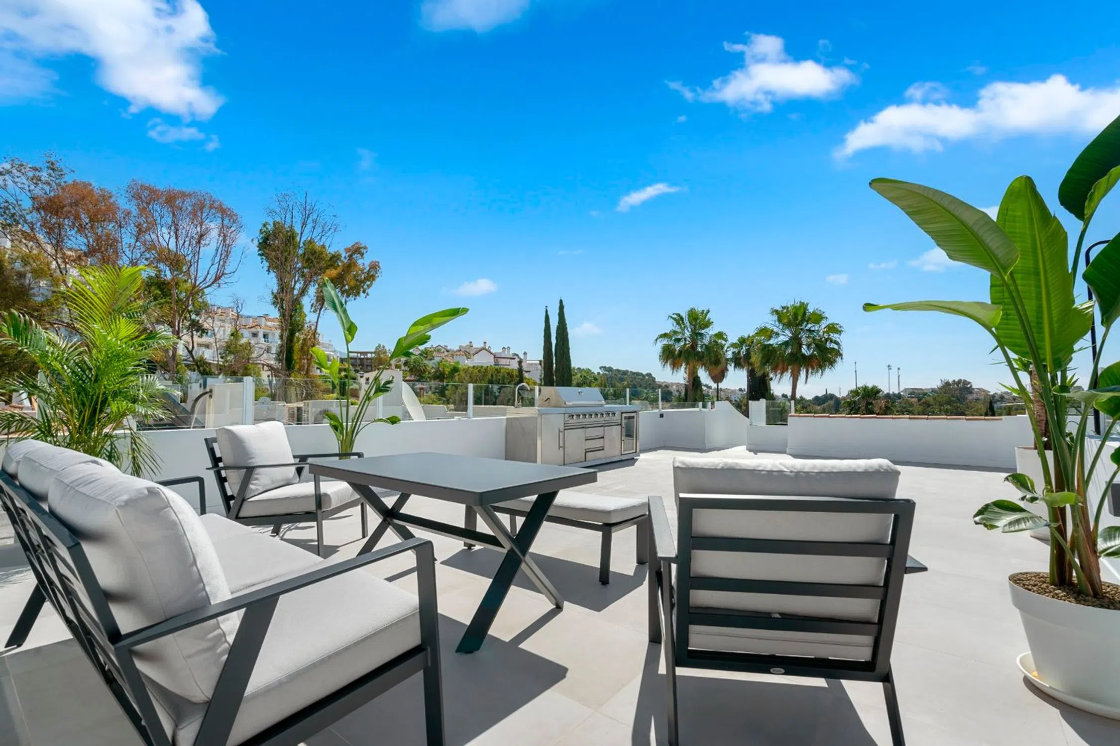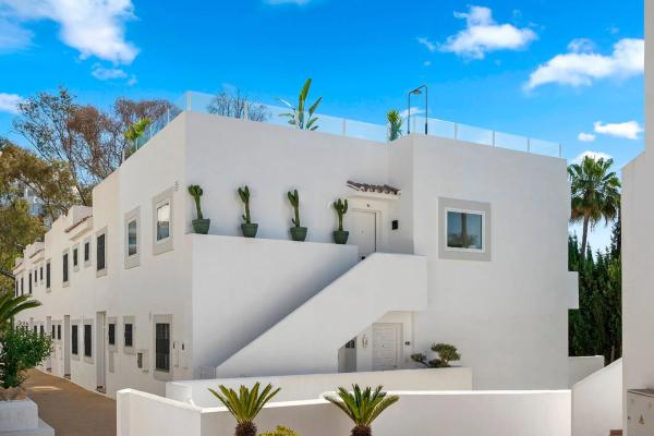 Presentamos este ático, una propiedad reformada con buen gusto ubicada en la serena urbanización Balcón del Golf en Nueva Andalucía. Ofreciendo una excelente oportunidad de inversión de alquiler, este encantador ático representa una combinación perfecta de vida práctica y diseño escandinavo moderno. Construida en 1995 y completamente renovada en 2023, esta propiedad de 84 m² ofrece un diseño bien estructurado con tres dormitorios y dos baños. Se utilizaron materiales de alta calidad cuidadosamente seleccionados durante la renovación, con atención al detalle evidente en todo el ático, incluidas las elegantes luces regulables y una característica única de pared de vino. La propiedad ofrece un entorno de vida armonioso, comenzando con una entrada privada y una escalera. La cocina de planta abierta, equipada con electrodomésticos SMEG nuevos, se une a una cómoda sala de estar. El primer baño, oculto detrás de una innovadora puerta de madera, añade un elemento de sorpresa y funcionalidad elegante al diseño. Una de las características clave del Penthouse es la amplia terraza en la azotea de 54 m². Equipada con una cocina al aire libre, ducha y espacio potencial para un jacuzzi, esta área al aire libre promete momentos de tranquilidad bajo el sol del Mediterráneo y es perfecta para cenar al aire libre. La propiedad ofrece dos plazas de aparcamiento en garaje y un trastero, lo que garantiza la comodidad práctica para los residentes. Las áreas comunes ofrecen a los residentes acceso a una piscina y jardín compartidos, mejorando el atractivo de la propiedad. Ubicada a poca distancia del tranquilo Lago de las Tortugas y a solo unos minutos en automóvil de los servicios locales, como tiendas, escuelas y la playa, la ubicación de esta propiedad es muy deseable. Su proximidad a los campos de golf aumenta aún más su atractivo de alquiler. Con un precio de 650.000 euros y se ofrece completamente amueblado en un atractivo estilo escandinavo, esta propiedad es una oportunidad de inversión gratificante con un alto potencial de ingresos por alquiler.