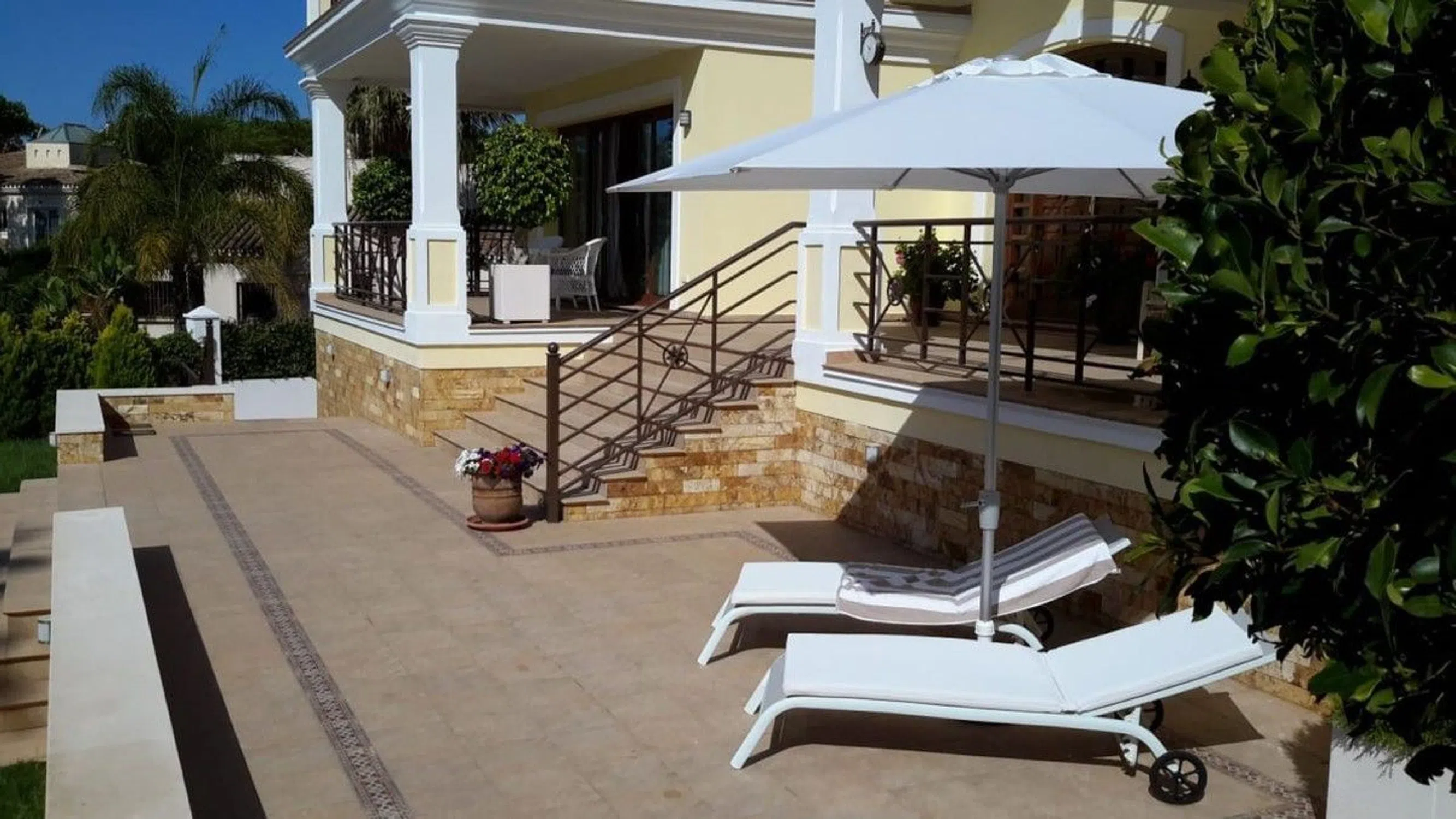 Situada en una urbanización prístina y muy solicitada, esta elegante villa en venta en Hacienda Las Chapas, Marbella combina elegantes interiores y hermosos espacios al aire libre para ofrecer todos los elementos de una vida con estilo. Un acogedor hall de entrada en la planta baja de la villa conduce a una sala de estar y un comedor muy espaciosos y elegantes, y a una cocina totalmente equipada con amplios gabinetes, una isla central y electrodomésticos de alta gama. La sala de estar se abre a una amplia terraza con varias áreas para sentarse, ideal para el entretenimiento en el interior y al aire libre, con vista a los hermosos jardines y la piscina privada. Hay un dormitorio de invitados con baño en suite en el nivel principal y un aseo de invitados. La propiedad incluye dos dormitorios más generosos en el primer piso, cada uno con baño privado, vestidores y acceso a sus propias terrazas privadas con vista a la piscina y vistas parciales al mar, donde puede comenzar el día con un desayuno gourmet en su terraza al aire libre y disfrutar del suave sol de la mañana. Uno de los dormitorios también tiene acceso al solárium. Esta villa con orientación sureste tiene un apartamento independiente con un dormitorio, un baño, una sala de estar y su propia entrada privada en la planta baja, con conexiones para la instalación de una cocina. Esto podría proporcionar una escapada de lujo para su visita. familiares y amigos. También hay un gran garaje para 3 coches, numerosos trasteros y un cómodo cuarto de lavado en este nivel. Otras características notables de esta villa de Marbella, que muestra una elegancia y sofisticación atemporales, incluyen suelos de mármol y calefacción por suelo radiante, aire acondicionado en todas las habitaciones, un sistema de calentamiento solar de agua de bajo consumo y doble acristalamiento, entre otros. La villa se encuentra en una ubicación privilegiada en una urbanización de prestigio en Marbella, con un servicio de patrulla de seguridad las 24 horas. Se encuentra a poca distancia de la playa, de una selección de restaurantes y tiendas y a solo diez minutos en coche del centro de la ciudad de Marbella. La proximidad de esta villa inmaculada a impresionantes playas y una increíble variedad de servicios que incluyen campos de golf vírgenes, restaurantes gourmet, entretenimiento, tiendas de lujo y un sinfín de opciones de ocio en Marbella y Puerto Banús, y a solo 30 minutos en automóvil del aeropuerto de Málaga, lo hace ideal para aquellos que buscan una hermosa casa en un entorno tranquilo rodeado de exuberante vegetación y árboles maduros y, sin embargo, a minutos de la vibrante ciudad de Marbella. Esta es una maravillosa oportunidad de poseer una casa que presenta una experiencia de estilo de vida elevada en una de las urbanizaciones más apreciadas de Marbella.