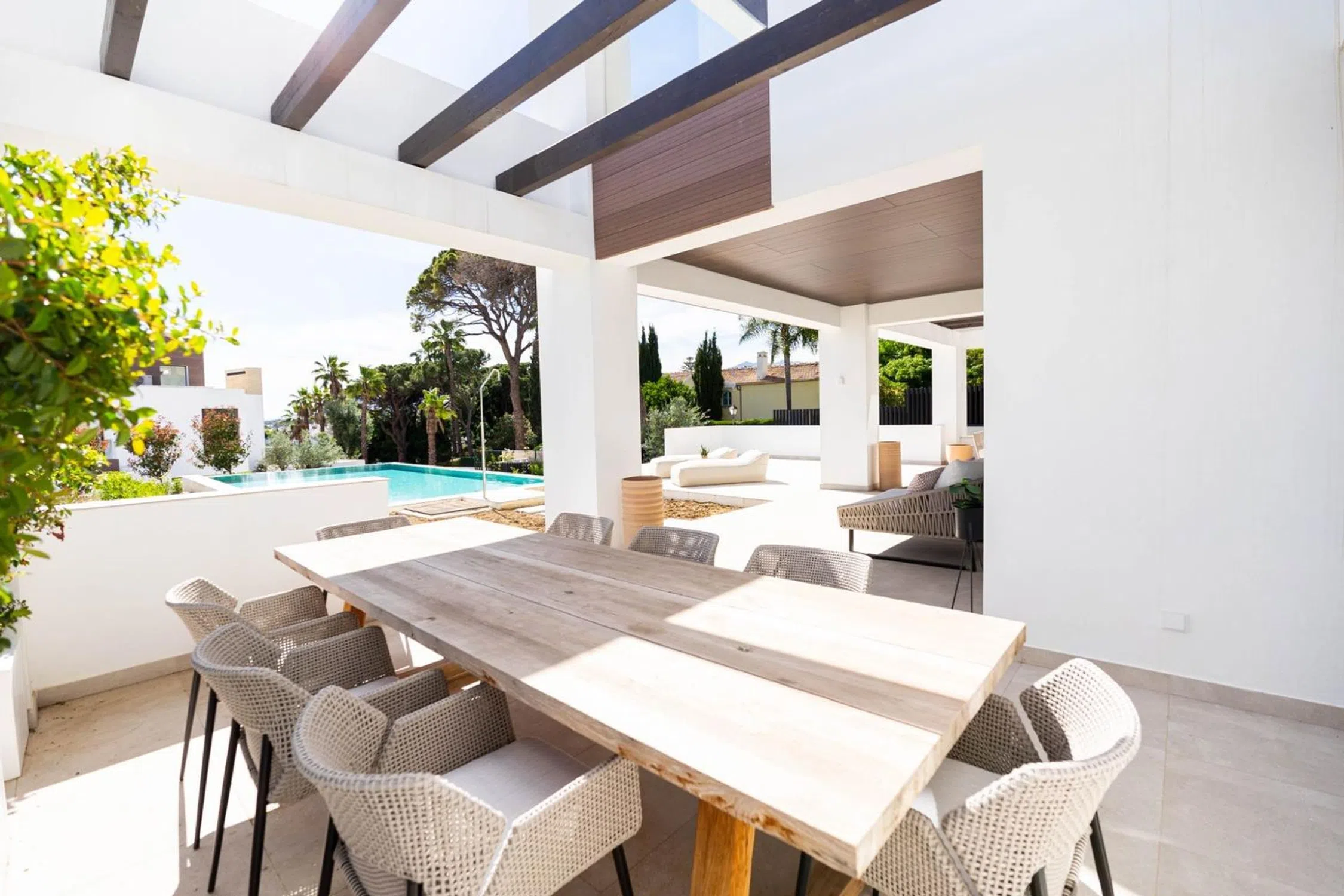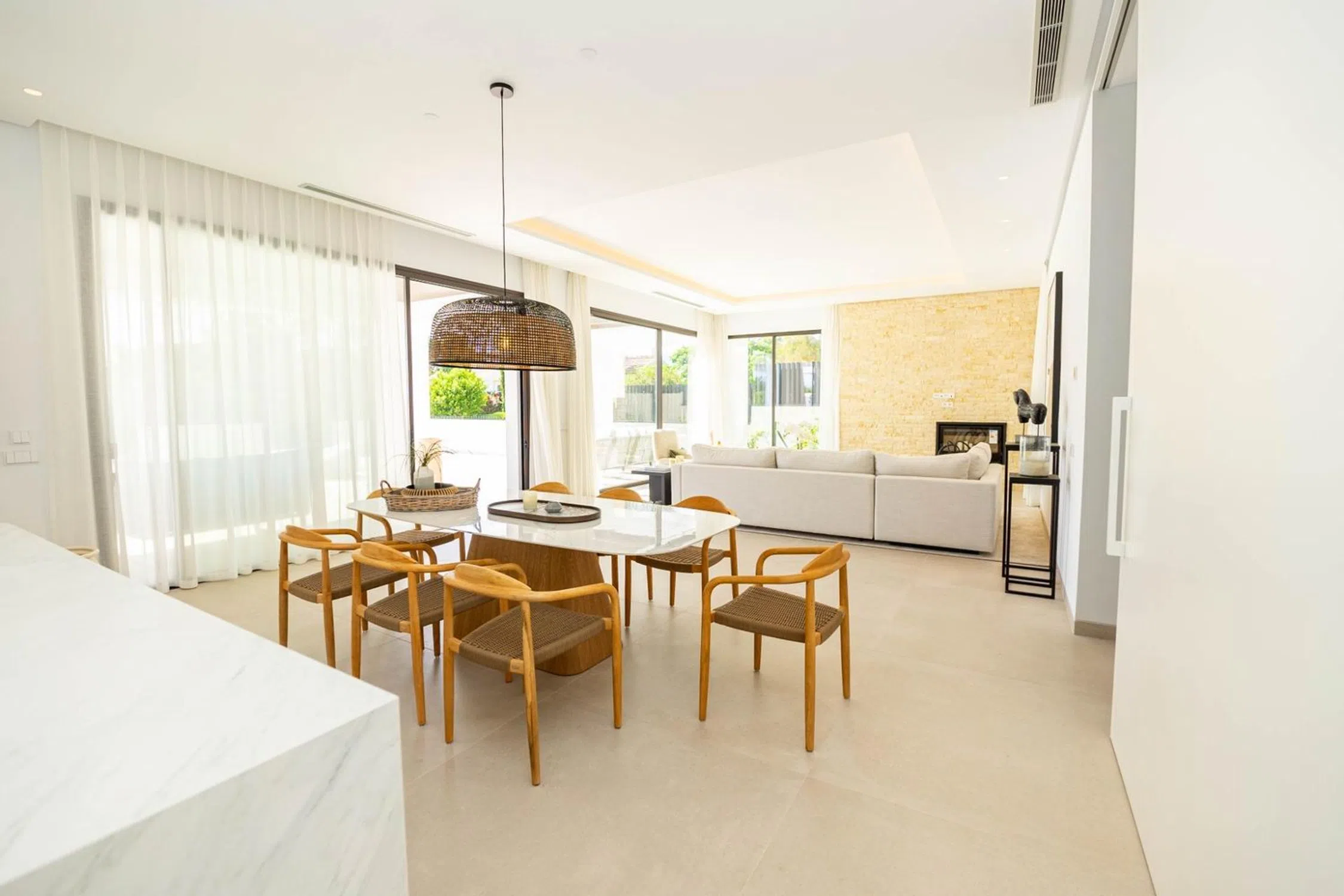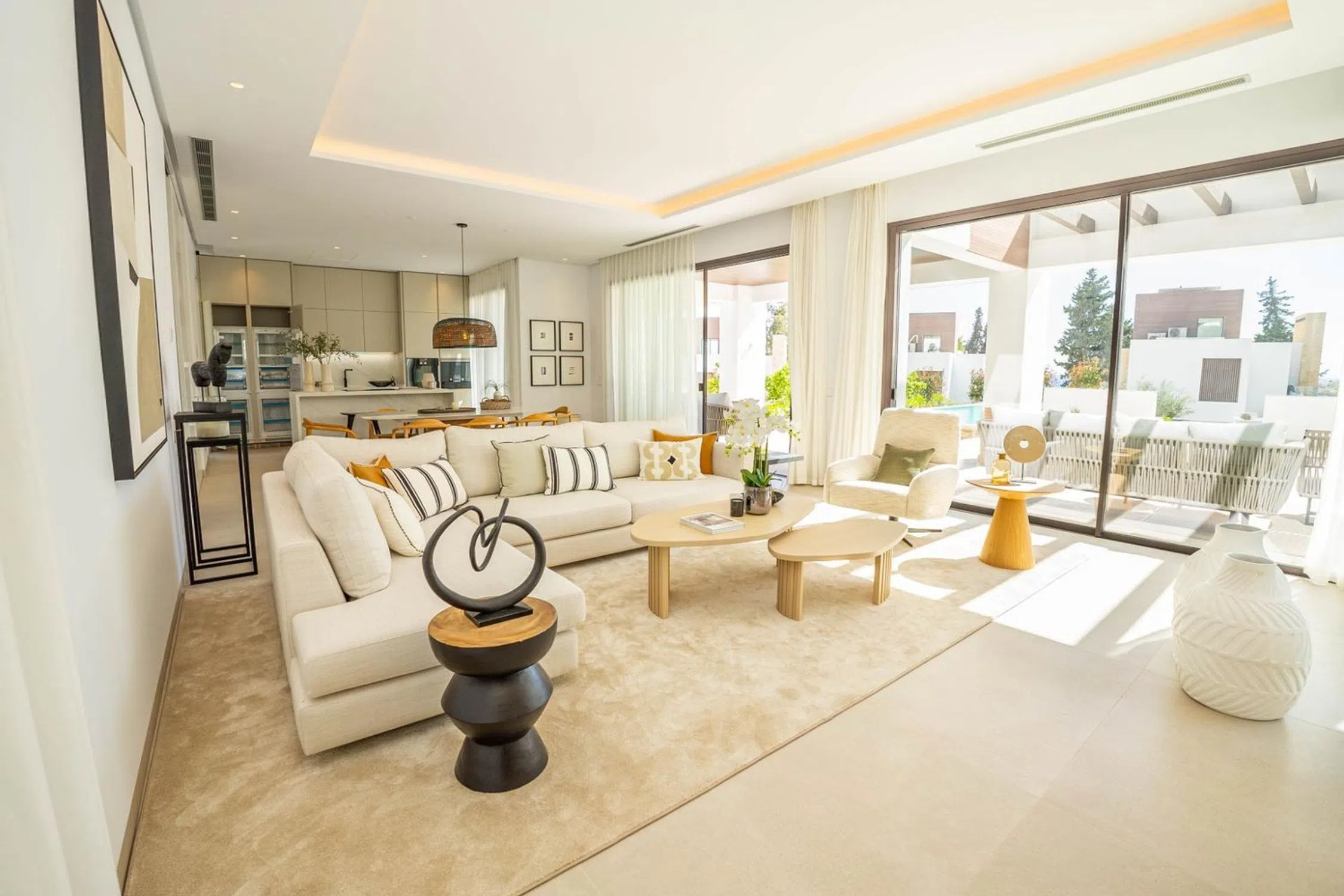 En pleno centro de Marbella ( al lado del famoso Pirulí), a 700 metros de la playa, se encuentran dos villas espectaculares en venta, en una pequeña urbanización con seguridad 24 horas. Han sido terminadas en Marzo del 2024, con los mejores acabados. Superficie de 593 metros cuadrados construidos y 443 metros útiles. Se distribuye en 4 plantas todas con suelos radiantes, domótica por y las mejores calidades. Ascensor en todas las plantas. En la planta baja se encuentra una zona de lavandería, el garaje cubierto con espacio para dos coches y dos motos, además de una bodega espectacular y amplia, una preciosa zona de cine, un aseo y la zona de relax con sauna, baño turco y ducha. En la planta principal encontramos la entrada con puerta con gran altura, cocina amplia con un perfecto diseño y los mejores electrodomésticos gaggenau, además de una zona para comer y abierto a un espacioso salón luminoso con una chimenea eléctrica. Además en esta planta tenemos una habitación de invitados con baño en suite y otro aseo. En esa misma planta encontramos una bonita terraza perfecta para bañarte en su piscina climatizada con vistas despejadas parciales al mar. En la primera planta encontramos 3 habitaciones muy amplias y luminosas, todas con baño en suite, con armarios empotrados enormes y la habitación principal tiene vistas parciales al mar y un baño en suite con bañera exenta con preciosas vistas gracias a las cristaleras tan amplias que están por toda la casa. En la última planta podemos disfrutar de un gran jacuzzi con vistas al mar y espacio para relajarte o poner una bonita barbacoa. Estas dos villas son las mejores ubicadas de toda la urbanización ya que estan a mas altura y tienen más metros. La primera villa esta sin amueblar 4.480. 000 euros La segunda villa que hace esquina y esta al lado de la otra, se encuentra amueblada y su precio es de 5.400. 000 euros. Si quieres vivir en una casa de lujo, en pleno centro de Marbella y a 700 metros de la playa, esta es tu casa!