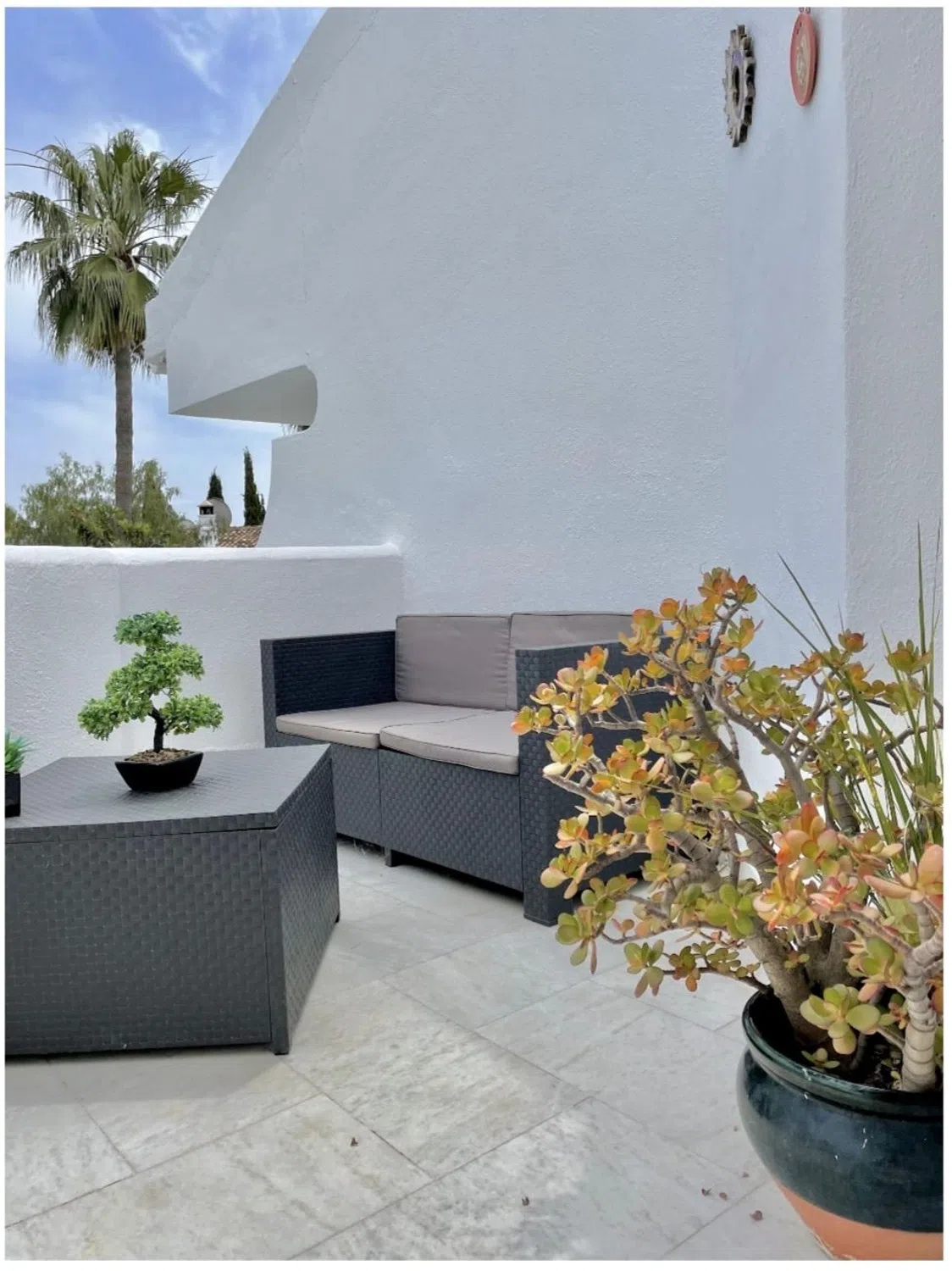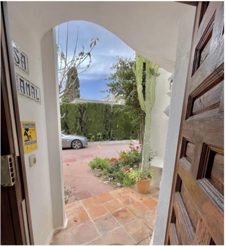MARBELLA - COSTA DEL SOL En una de las mejores zonas residenciales de Marbella, a 3 minutos en coche del centro. En Sierra Blanca, casa adosada de dos plantas, con tres dormitorios y tres baños, salón comedor, cocina independiente y patio exterior. Parking exterior en la puerta de casa. Urbanización cerrada, sin guardia de seguridad. La casa tiene un bonito jardín con acceso directo a la piscina. Porche para disfrutar de la vida exterior y terraza grande en la primera planta con vistas. Diseñada por el famoso arquitecto César Manrique esta casa ofrece una vida tranquila, cómoda y accesible. Su ubicación es excelente por la proximidad al corte inglés, universidad, colegios etc ….
