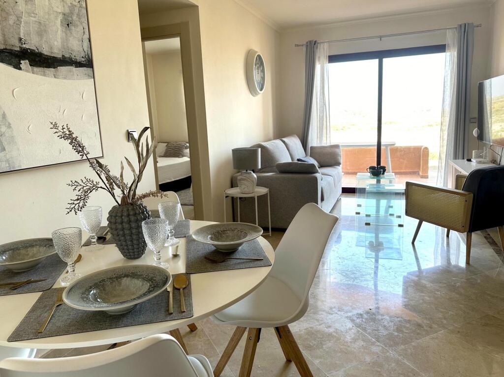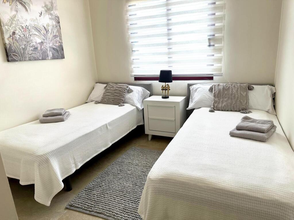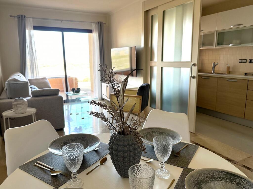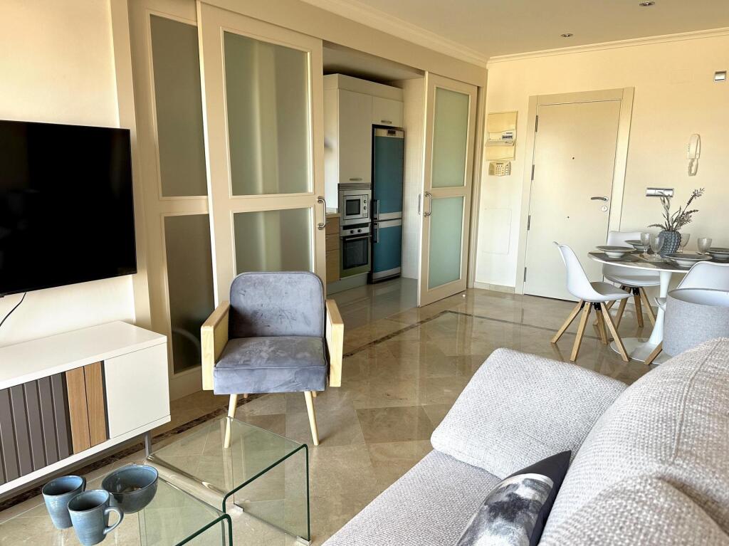 El apartamento cuenta con una cocina completamente amueblada, equipada con electrodomésticos totalmente nuevos. Disfruta de vistas al mar desde las dos terrazas: una se accede desde el salón y la otra desde el dormitorio principal.