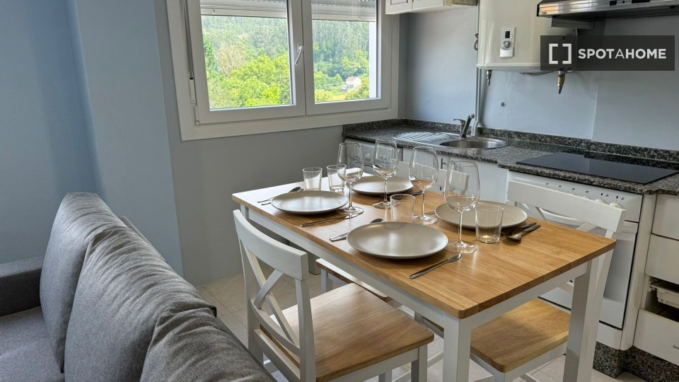 El apartamento se encuentra en Caldas de Reis, conocida por su encanto histórico y su ambiente relajado. En las inmediaciones encontrará restaurantes como Budhi's y A Bodega Do Roxo, o atracciones turísticas como el Malecón Río Umia y Fonte Termal Das Burgas. También se encuentran otros servicios como el Rocinante Sport Bar y la Tapería.