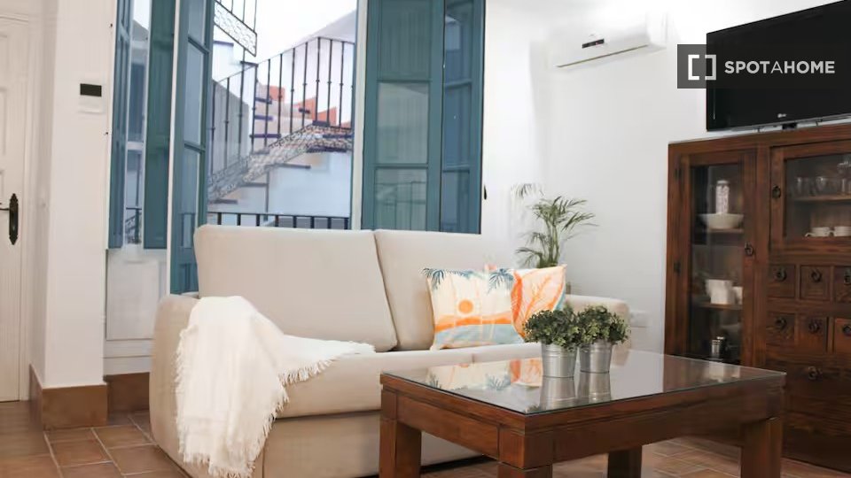 Este apartamento amueblado de 1 dormitorio, ubicado en Triana, Sevilla, ofrece comodidad con aire acondicionado individual, cocina equipada y TV. Tenga en cuenta que la propiedad no tiene ascensor ni lavadora. No se permiten mascotas ni fumar.