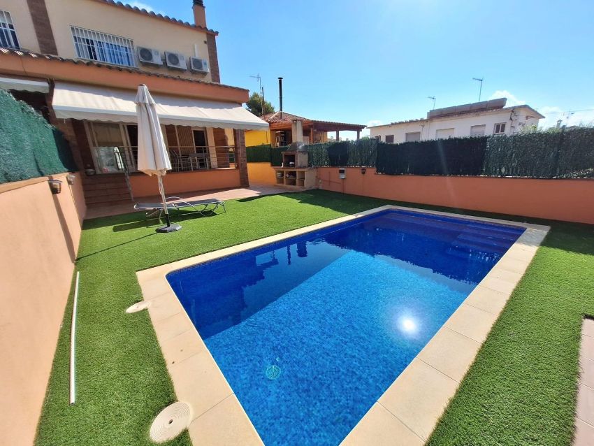 Bonita casa pareada en el centro de Segur de Calafell cerca de todos los servicios ( colegios, supermercados, farmacias, centro medicos, Renfe etc. ) La vivienda consta de dos palntas, en planta baja tenemos garaje, aseo, cocina con salida a terraza y amplio salon comedor con salida a terraza y acceso a jardin con barbacoa y piscinaEn planta superior cuatro dormitorios dobles uno de ellos suite, baño completo para el resto de dormitorios, terraza de acceso a una de las habitacionesIdeal tanto para vivir todo el año como para pasar dias de descanso centrica y tranquila a la vezVISITELA.