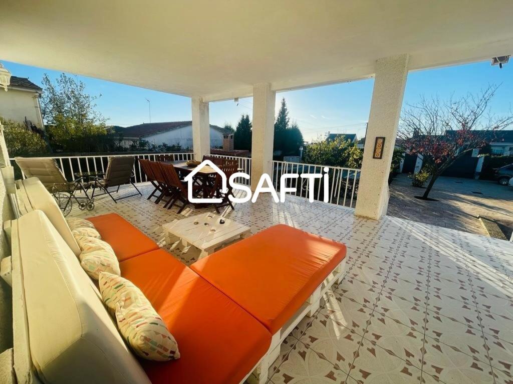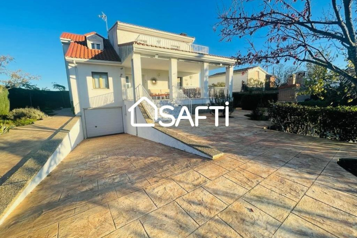 Chalet de 1000mt2 de parcela, parte exterior con puerta automática de entrada con capacidad para mínimo 3 vehículos, dispone de piscina con cerramiento para una mayor tranquilidad por los pequeños de la casa, y zona de barbacoa y zona ajardinada.