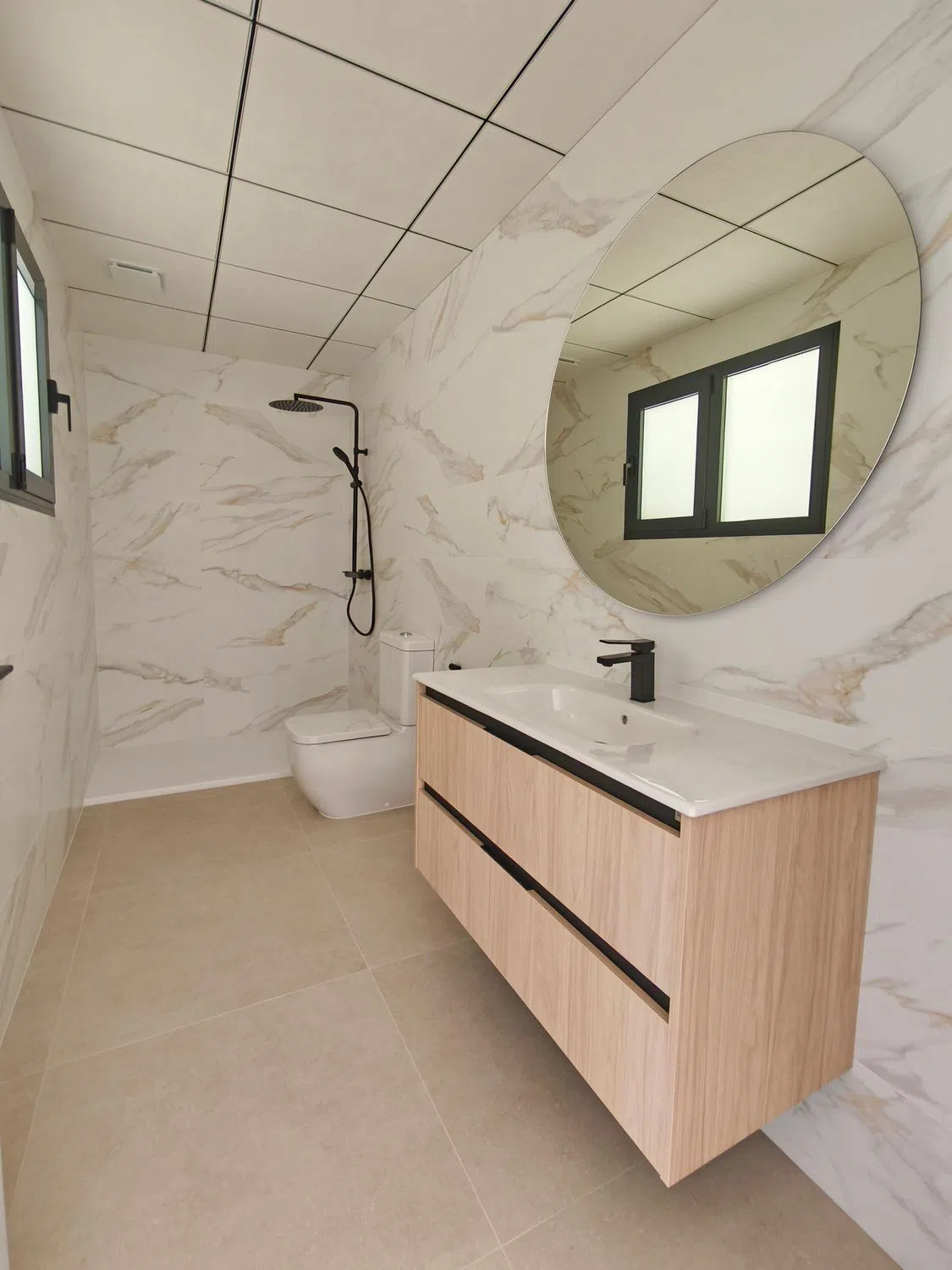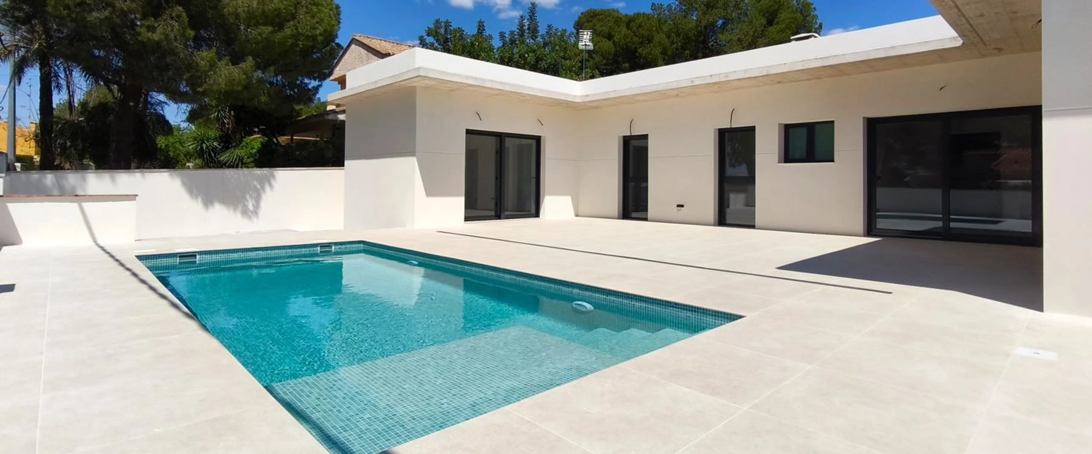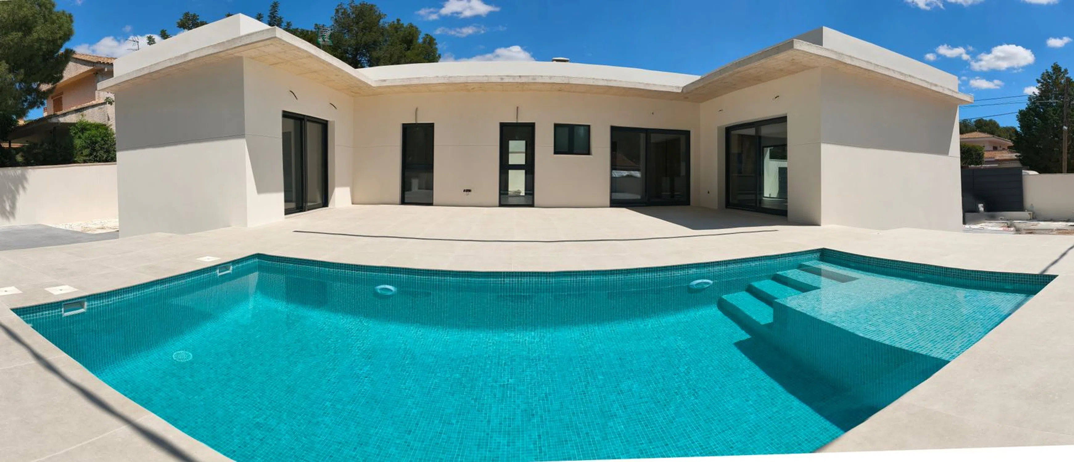 Жилье предлагает кондиционирование воздуха, аэротермическое снабжение горячей водой, видеодомофон, моторизованные жалюзи, моторизованные ворота, алюминиевые окна с теплоизоляцией, встроенные шкафы и гардеробные, кухонная техника, холодильник и посудомоечная машина, духовка и микроволновая печь, потолочная вытяжка, входная дверь с системой безопасности, полы и стены из крупноформатного керамогранита. Завершение дома выполнено высококачественной отделкой, включая периметрические стены.