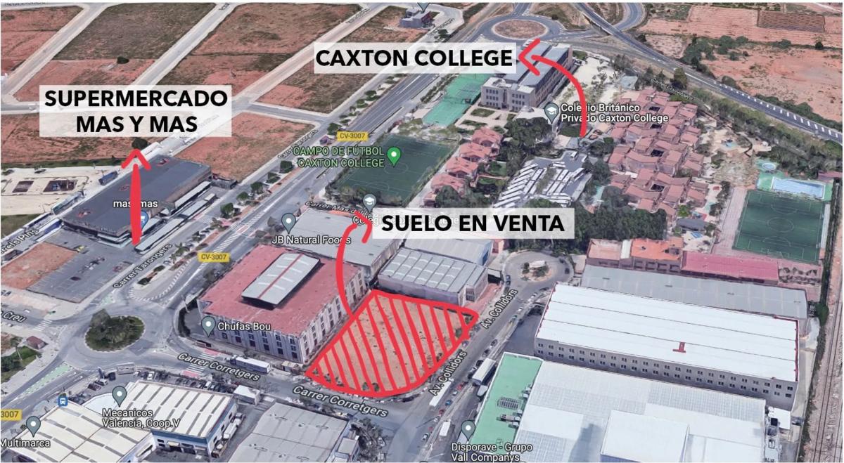 Se vende parcela en pleno Puzol, junto al Caxton college y Chufas Bou, 2500m2. ABSTENERSE INMOBILIARIAS. - Longitud mínima de fachada: 12 m. - Número máximo de plantas: 3. - Altura máxima: 11,00 m a cara inferior de cerchas. - Edificabilidad: 2,25 m2 /m2. - Separación a lindes: a vial, 5m, y resto 1,5 m. - Saneamiento: red separativa. - Aparcamientos: 1 plaza/200 m2 construidos. Usos: -El uso industrial, el de almacén y el de aparcamiento.
