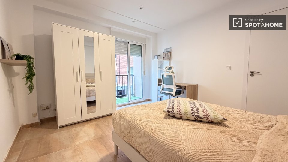 Esta habitación completamente amueblada en un piso compartido de 6 habitaciones se alquila en Torrent, Valencia. El piso cuenta con cocina equipada y balcón o terraza. Es ideal para profesionales y estudiantes, y se admiten parejas. Spotahome ha verificado su estado de alquiler, lo que garantiza un proceso de alquiler verificado.