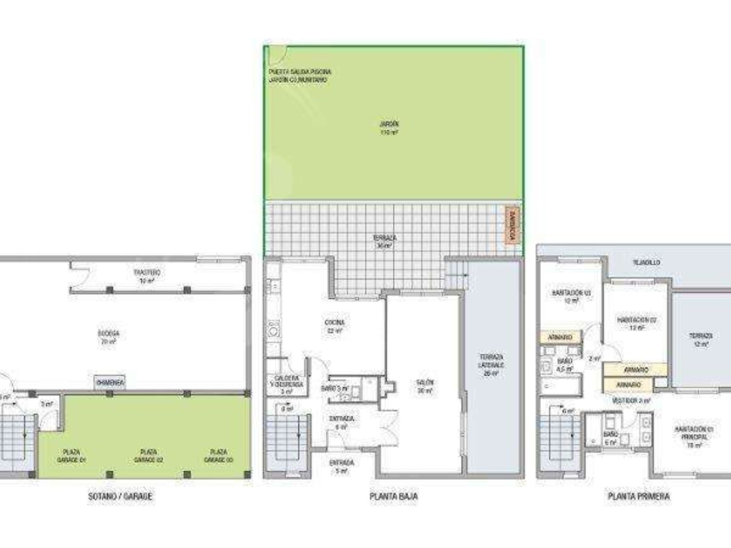 ¡Es una gran oportunidad para adquirir la casa de tus sueños en la mejor zona de Zaragoza! Te presentamos en exclusiva este amplio pareado de estilo moderno, ubicado en una urbanización cerrada y privada con piscina comunitaria. Con una superficie útil de 244 m2 y un jardín privado de 110m2, esta vivienda unifamiliar pareada cuenta con todas las comodidades para disfrutar en familia.La entrada principal te lleva a un hall en el que se distribuyen las escaleras que comunican las diferentes plantas de la vivienda. En la planta sótano, encontrarás una amplia bodega de 74 m2 con un trastero de 12 m2, desde la cual se accede a las tres amplias plazas de garaje privado.En la planta baja, podrás disfrutar de un amplio salón de 32m2 con acceso a terraza y vistas al jardín, una moderna cocina totalmente equipada de 22 m2, con despensa de 3 m2 y acceso a otra terraza con vistas al jardín. Además, el jardín de 110 m2 cuenta con una terraza de 36 m2 con barbacoa de obra y una puerta de salida directa al jardín con piscina comunitaria, lo que la convierte en la única casa de la urbanización con esta posibilidad. También cuenta con un aseo de cortesía, una entrada de 6 m2 y una terraza lateral de 26 m2.En la planta primera, encontrarás una confortable habitación principal con 18 m2 y acceso a una hermosa terraza de 12 m2, un vestidor de 6 m2 y un baño principal de 6 m2, que incluye un plato de ducha extra large. Además, cuenta con dos habitaciones individuales de 12 m2 con grandes armarios empotrados y un baño de 4,5 m2 con bañera hidromasaje. Todas las habitaciones ofrecen vistas al jardín, lo que les brinda una hermosa vista interior al parque.La casa cuenta con suelos de madera natural y mármol en la cocina, domótica, alarma, aire acondicionado/bomba de calor en todas las plantas, y calefacción con caldera de gas individual. Muy bien orientada al Sur, disfruta de sol de mañana y tarde con poco consumo de calefacción. La calificación energética demuestra la excelente gestión de energía de esta vivienda.En Rosales del Canal/Montecanal, esta vivienda unifamiliar pareada te ofrece una gran calidad de vida en la mejor zona de Zaragoza. Con colegios, supermercados (Mercadona) y servicio de bus y tranvía al centro, esta ubicación es perfecta para una vida conveniente y confortable. También cuenta con dos salidas a la Z40.No pierdas más dinero en alquiler, ¡te ayudamos a conseguir la máxima financiación posible! Solicita tu estudio financiero gratuito para conocer tu viabilidad y poder asesorarte adecu.