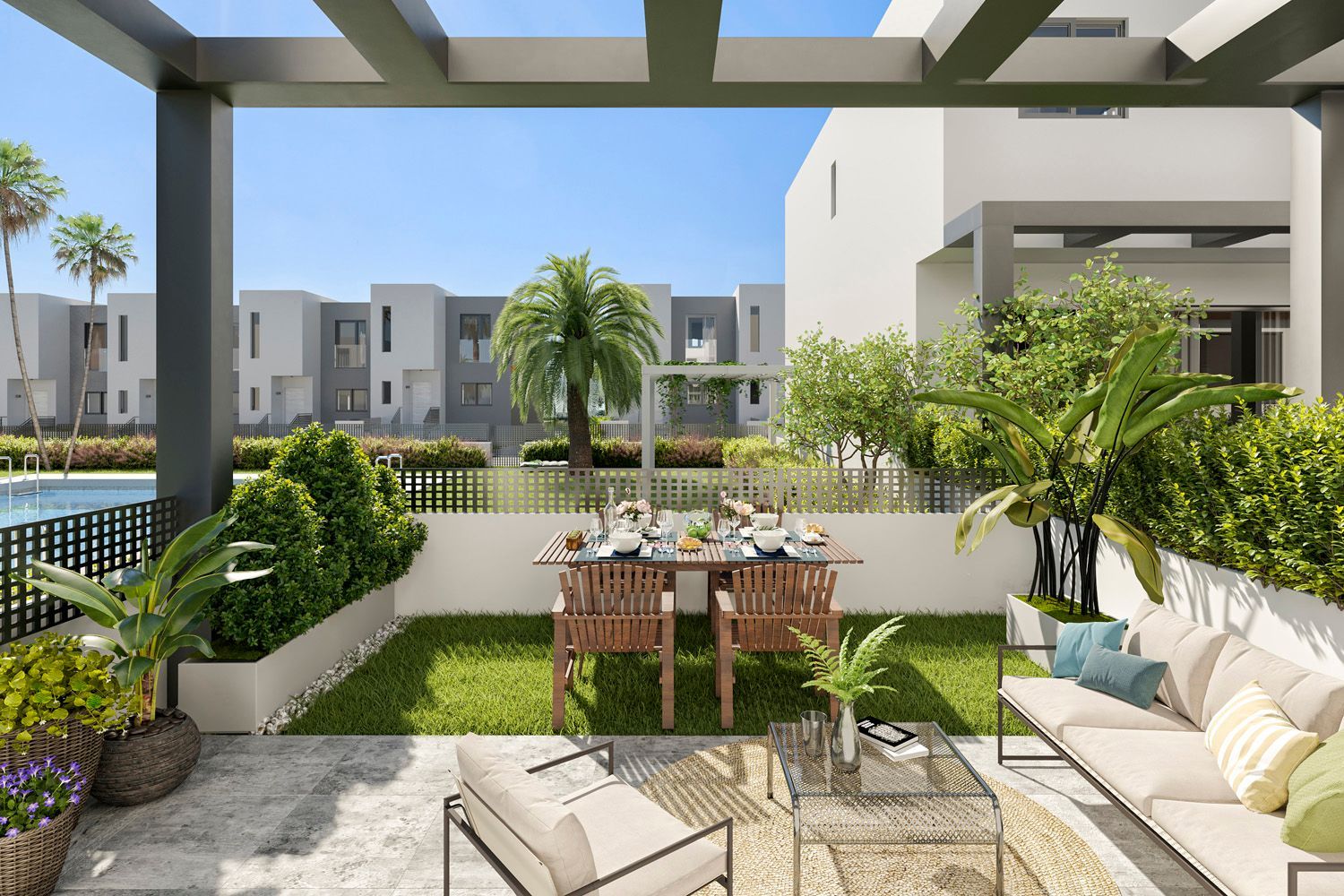 Продвижение Santa Clara Garden представляет собой комплекс из 40 новых таунхаусов в городе Альхаурин де ла Торре. Дома расположены в районе Санта-Клара, имеют отличные отделочные материалы и современный, тщательно продуманный дизайн. Они имеют верхний, нижний и подвальный этажи. Закрытый комплекс с общим бассейном и просторными зелеными зонами, где качество и устойчивость играют важную роль. Санта-Клара - это законсолидированный жилой район в городе Альхаурин де ла Торре, с большими зелеными зонами, детскими площадками и предусмотренными для спорта, образования и т. д., со всеми удобствами большого города. Santa Clara Garden имеет хорошее транспортное сообщение, всего в одном километре от автомагистрали A-7, откуда можно отправиться в любом направлении: пляж и лучшие торговые и развлекательные центры (торговый центр Плаза Майор, Икея...) провинции Малага находятся всего в 10 минутах езды на автомобиле. Центр столицы всего в 15 минутах езды, все это не теряя атмосферы традиционной деревни, окруженной полями, горами и морем, где можно насладиться спокойствием, на открытом воздухе заниматься спортом, таким как бег, пешие прогулки, велосипедные прогулки, гольф, водные виды спорта... без необходимости долгих поездок или использования автомобиля.