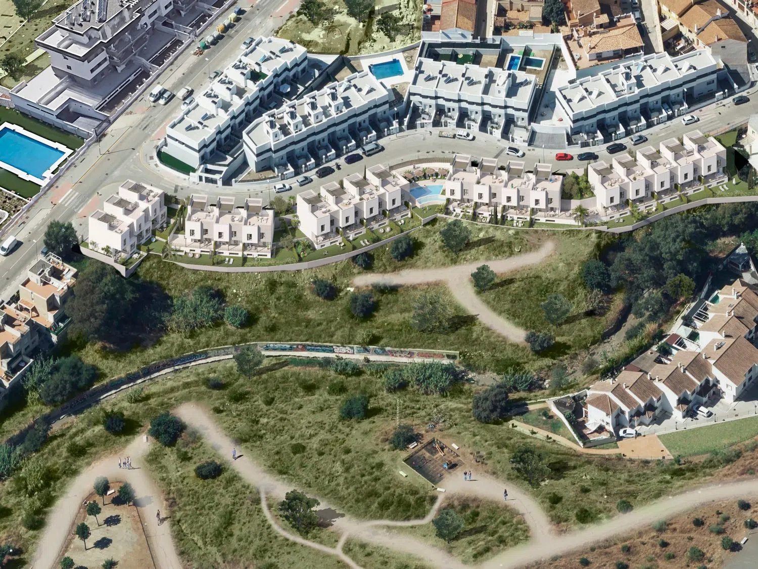 Bienvenido a , tu oportunidad de vivir en el lugar perfecto! Nuestra promoción de obra nueva te ofrece 19 adosados en Puerto de la Torre, en un entorno tranquilo y a la vez cerca de todo lo que necesitas. Cada una de estas hermosas viviendas cuenta con terraza, jardín, Planta Baja y Planta Primera, ofreciéndote un espacio amplio y cómodo para tu familia. Cuentan con 3 dormitorios, 2 baños uno de ellos en suite y un aseo, estos chalets cuentan con soláriums con vistas inmejorables. Esta promoción está estratégicamente ubicada, con la comodidad de tener institutos, colegios y supermercados a un paso de distancia. Además, disfrutarás de una excelente conectividad para llegar a donde quieras. En , la comunidad es una parte esencial de tu nuevo hogar. Podrás relajarte y disfrutar del buen tiempo en nuestra piscina comunitaria, mientras conoces a tus nuevos vecinos No pierdas la oportunidad de ser parte de y vivir la vida que siempre soñaste. ¡Contáctanos ahora y descubre tu nuevo hogar en Puerto de la Torre!