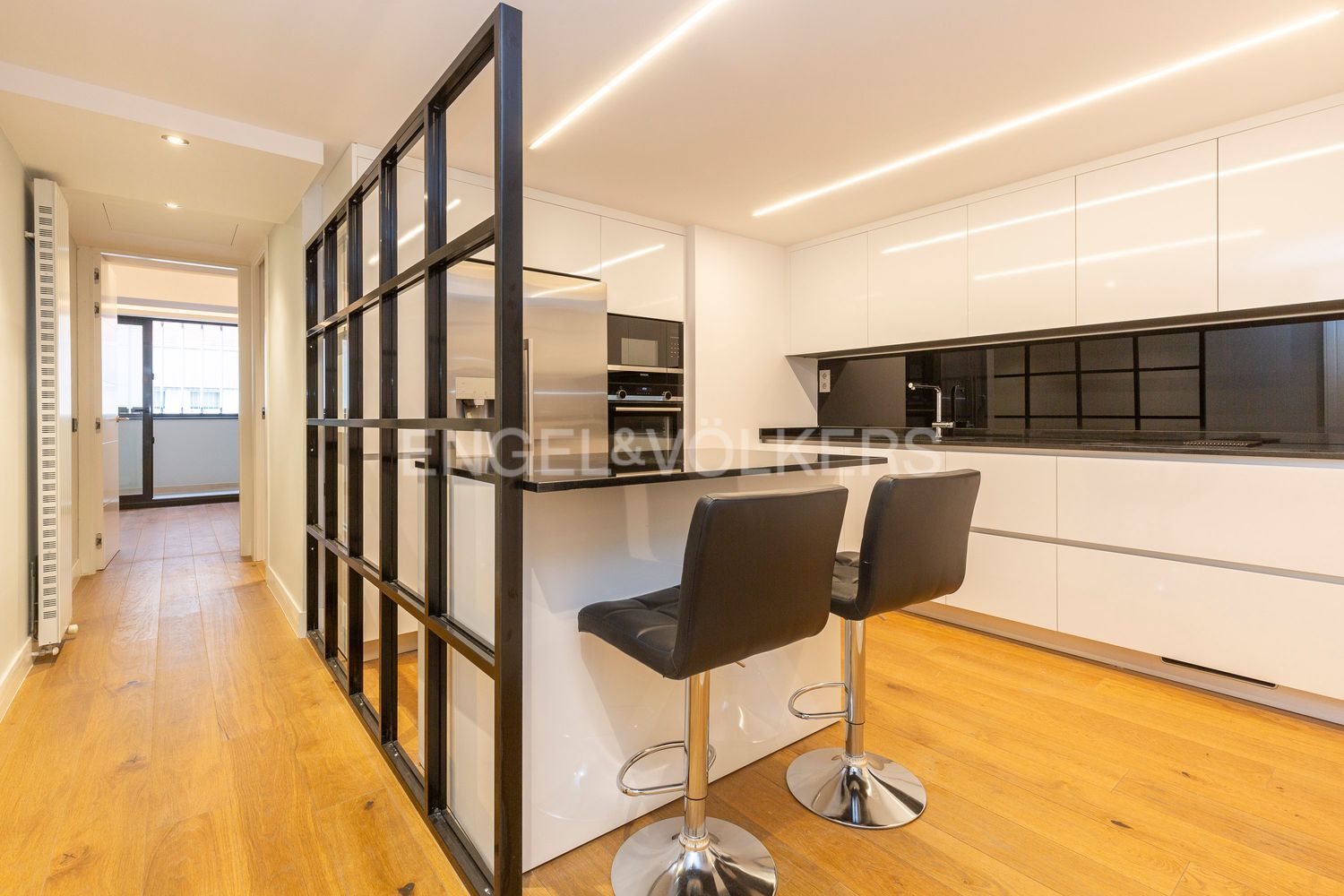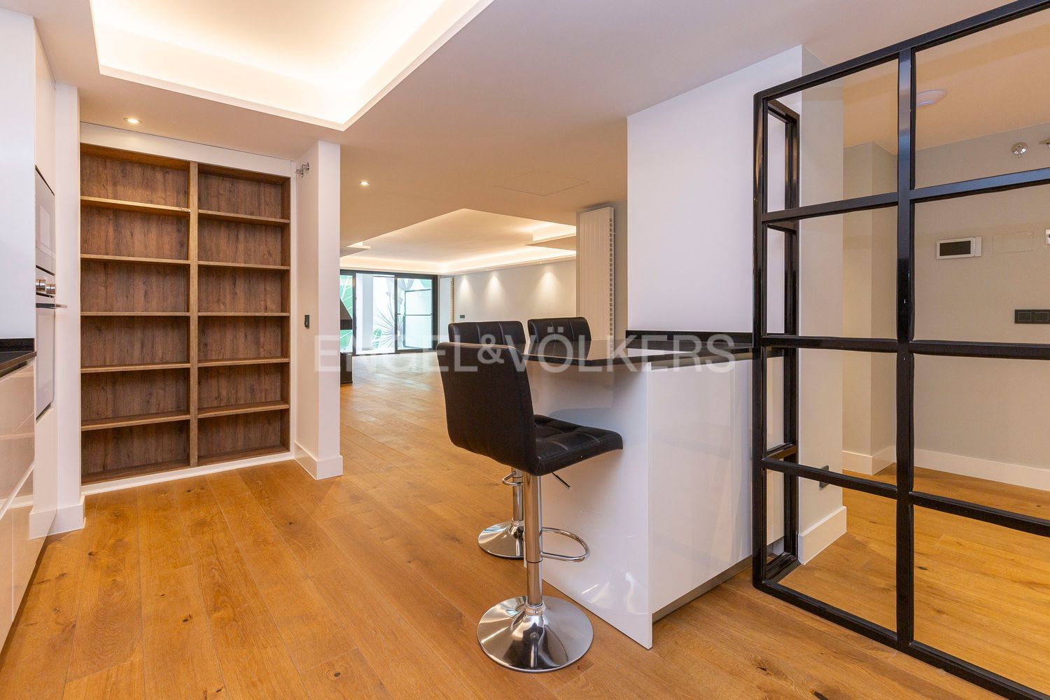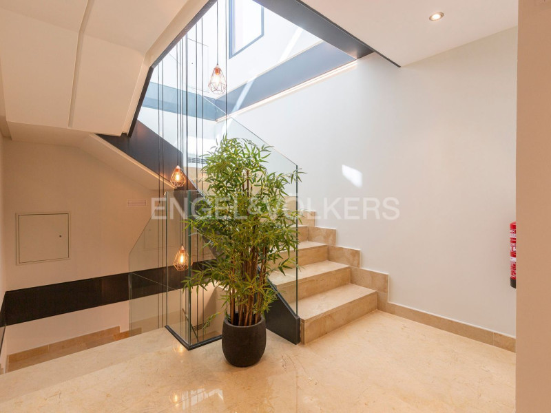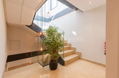 Engel & Völkers presenta cuatro exclusivas viviendas en el distrito de Salamanca, barrio de Guindalera, en un edificio de obra nueva terminada, de diseño vanguardista, que combina un diseño exclusivo y un elevado nivel de confort térmico y acústico con acabados de alta calidad y respondiendo a los más altos estándares medio ambientales y de ahorro energético.El acceso al edificio, tanto peatonal como rodado, se realiza a través de un gran vestíbulo de doble altura, con falso techo de vidrio sobre estructura espacial.Las viviendas, muy amplias y luminosas, con gran superficie construida, han sido diseñadas como un espacio diáfano con comunicación visual entre ambas fachadas, opuestas entre sí, lo que permite además la ventilación cruzada.Este espacio comprende una amplio salón con chimenea y cocina integrada, totalmente equipada y amueblada desde el cual se accede a las demás dependenciasEl edificio cuenta con geotermia individualizada para la climatización y producción de agua caliente sanitaria de cada vivienda, dotándolo de una calificación energética doble A. Con este sistema de geotermia se estima un ahorro entre un 70% / 80% en el consumo energético.En la cubierta del edificio se ha construido un espacio polivalente, de uso comunitario, que cuenta con solárium, piscina - jacuzzi e hidromasaje de alta presión y columna de ducha, con depuración salina y sistema desbordante. Decorado con plantas, canto rodado y fuente de agua es un espacio ideal para relajarse al aire libre.Sobresaliente es el acondicionamiento y decoración del patio interior con una gran pintura mural, junto con celosías de madera, jardineras y una y una fuente con cascadas de aguas iluminadas para uso exclusivo de la vivienda situada en planta bajaEn resumen, cada detalle ha sido cuidadosamente diseñado y seleccionado para crear un ambiente único y elegante que combina perfectamente la más moderna arquitectura con el máximo confort contemporáneo. Todo ello le confiere un valor excepcional, convirtiéndolo en activo excelente tanto para compra de vivienda habitual como para inversión.La entrega prevista de las viviendas es para finales del mes de septiembre de 2023.