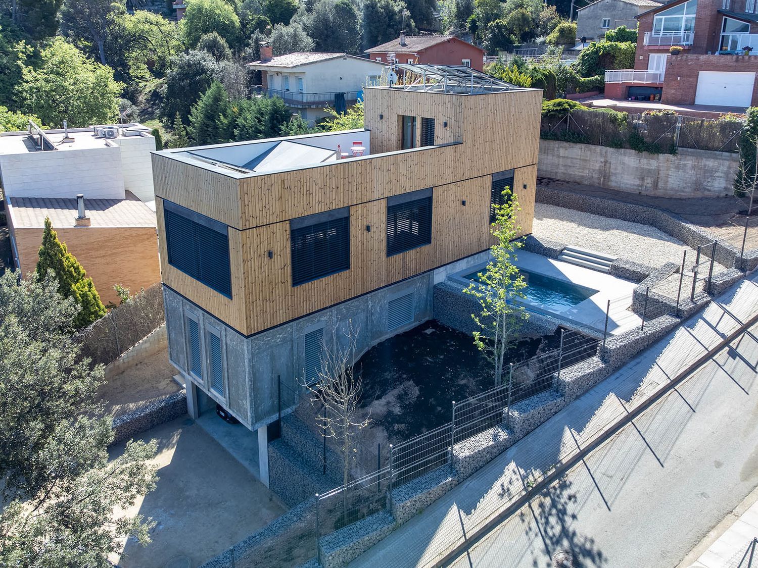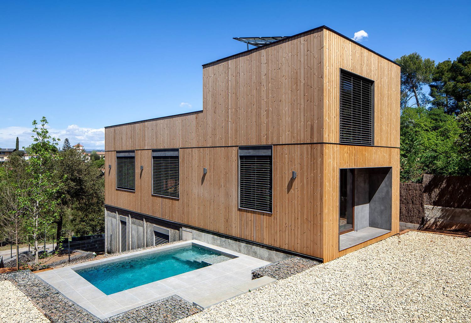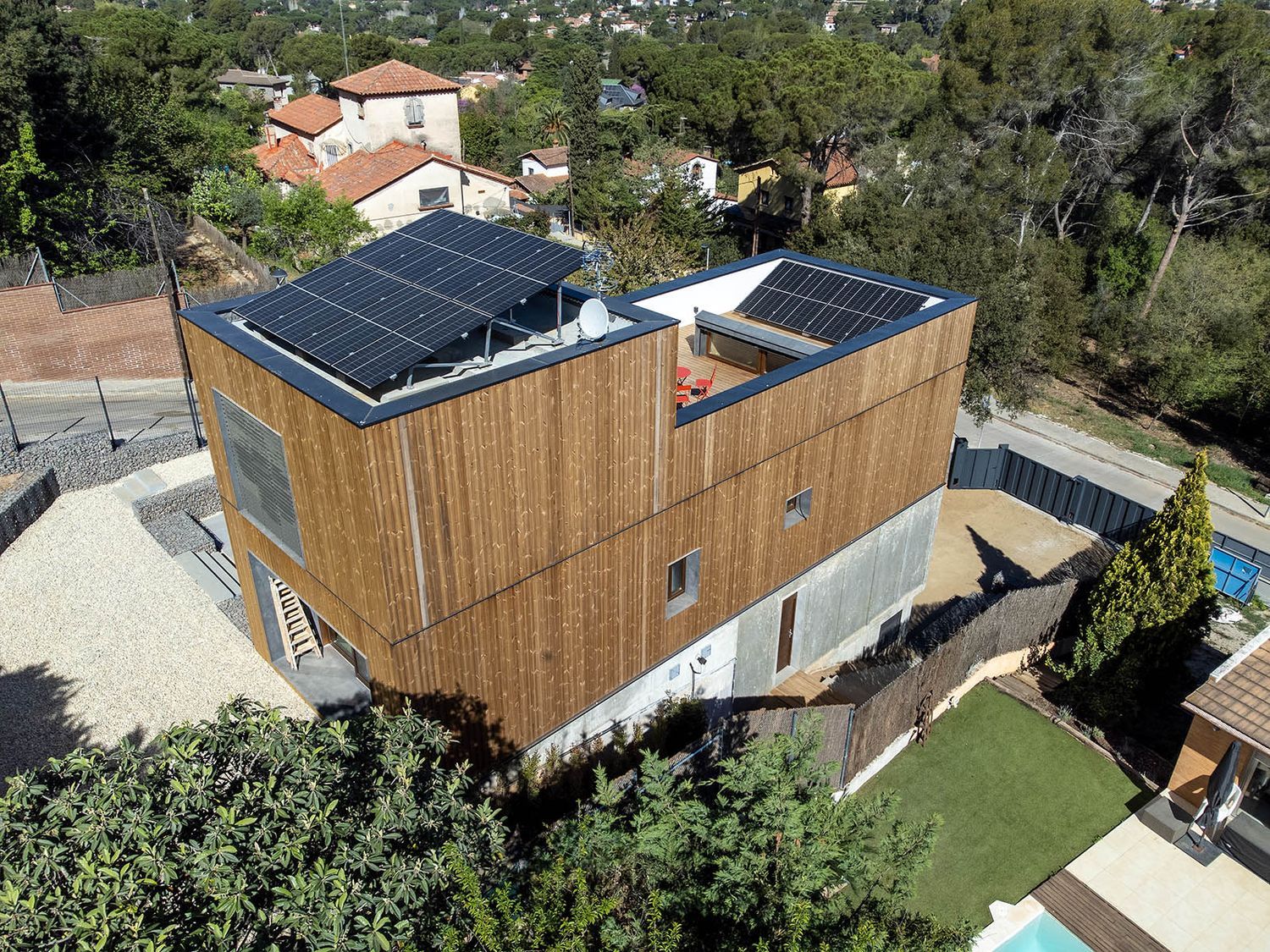Casa independiente con terraza de 70 m2, parcela de 600 m2 con piscina, garaje para 2 coches. Con ascensor dentro de la vivienda. Vivienda nueva a estrenar, terminada en abril del 2023. Casa completamente autónoma energéticamente (no conectada a red).